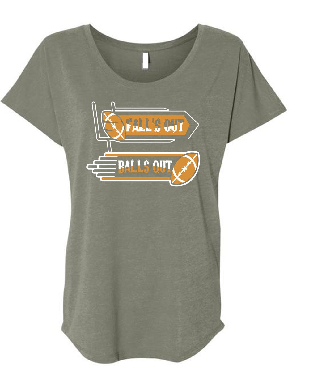 Fall's Out Balls Out T Shirt, Neing A Football Player T Shirt, Cool Shirt (Ladies' Triblend Dolman Sleeve)