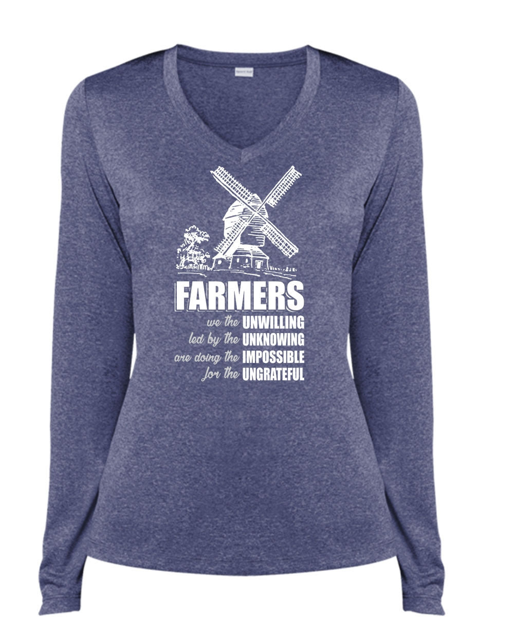 Farmers We The Unwilling T Shirt, Being A Farmer T Shirt, Cool Shirt (Ladies LS Heather V-Neck)