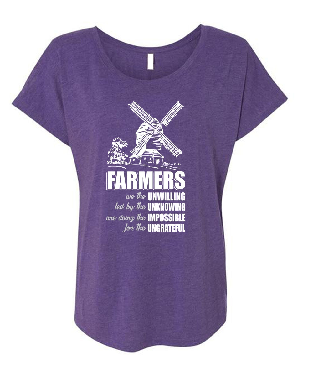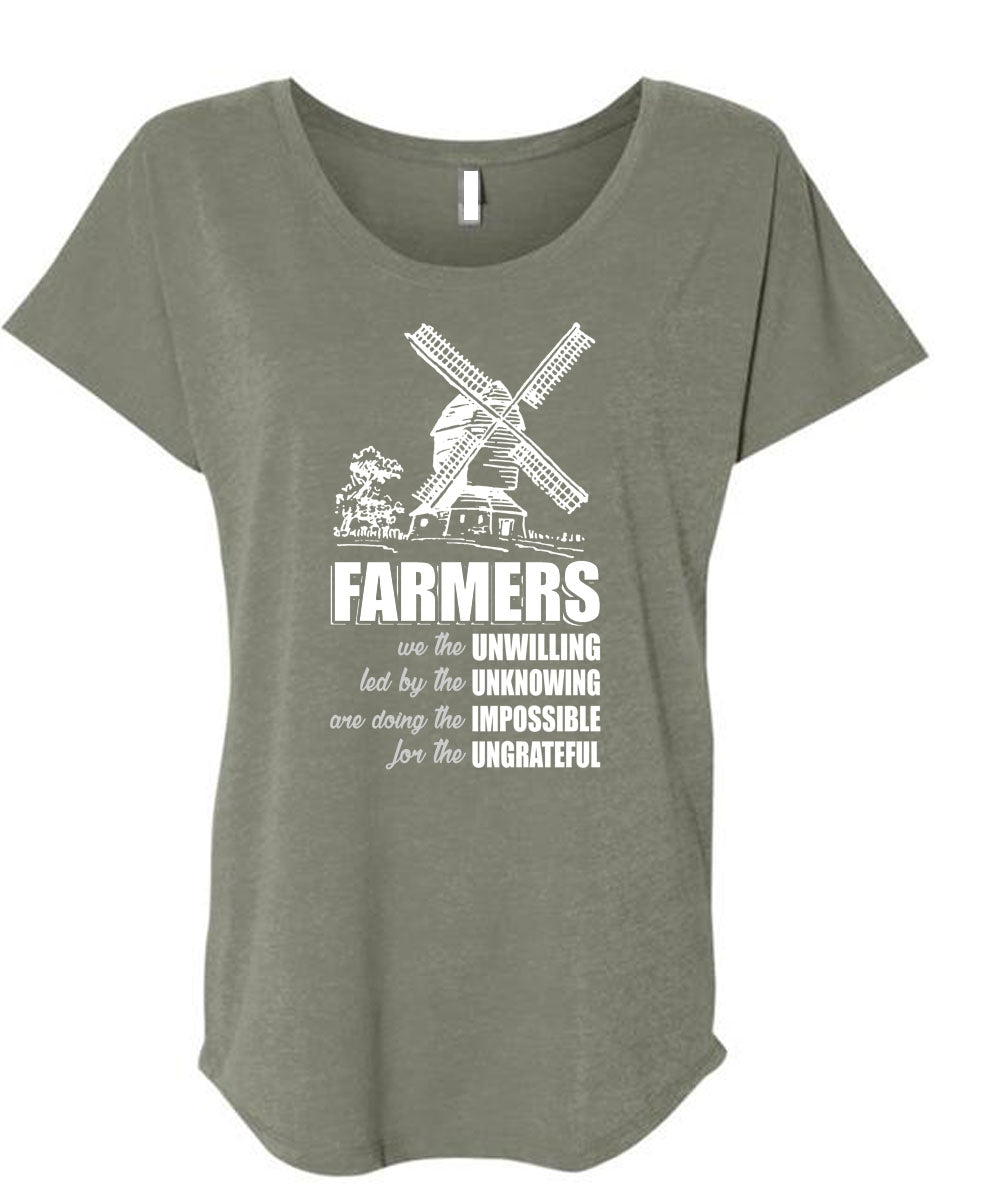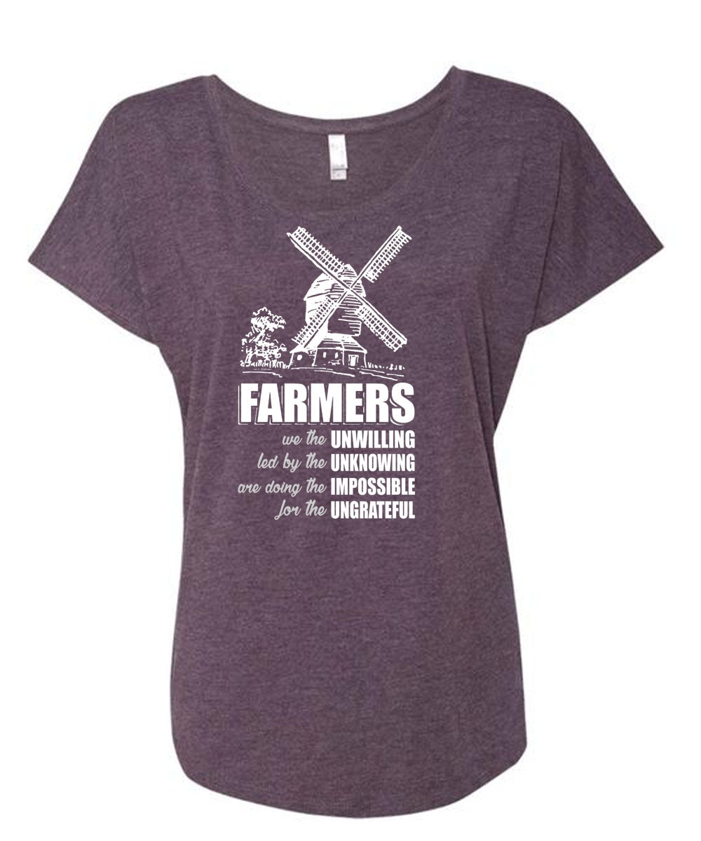 Farmers We The Unwilling T Shirt, Being A Farmer T Shirt, Cool Shirt (Ladies' Triblend Dolman Sleeve)