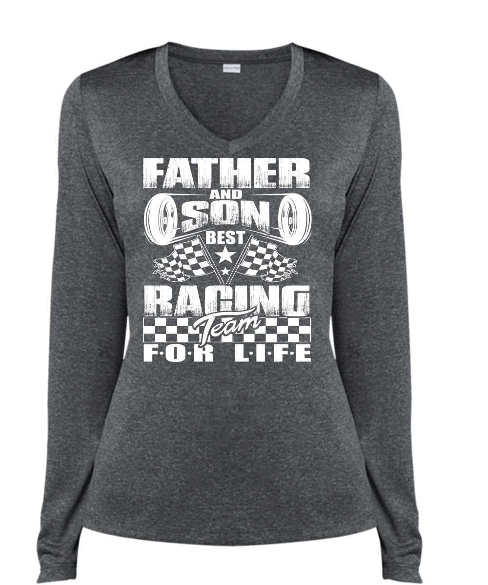 Father And Son Best Racing Team T Shirt, Being A Biker T Shirt, Cool Shirt (Ladies LS Heather V-Neck)