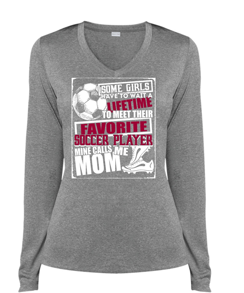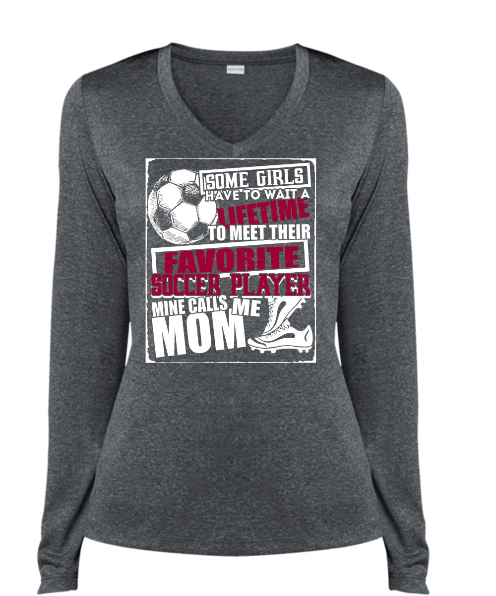 Favorite Soccer Player T Shirt, Mine Calls Me Mom T Shirt, Cool Shirt (Ladies LS Heather V-Neck)