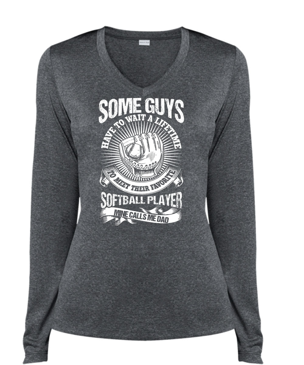 Favorite Softball Player T Shirt, Mine Calls Me Dad T Shirt, Cool Shirt (Ladies LS Heather V-Neck)