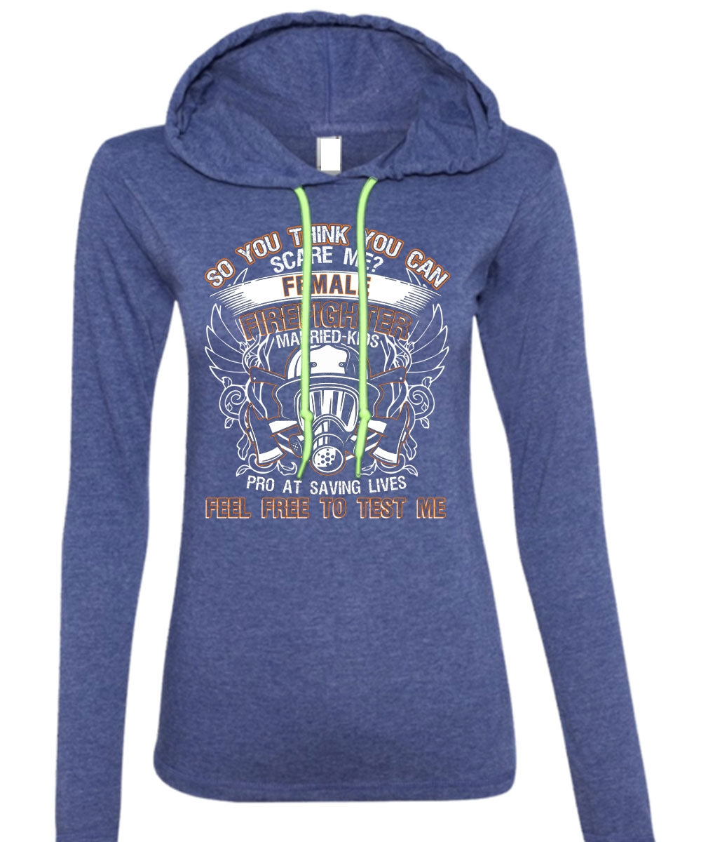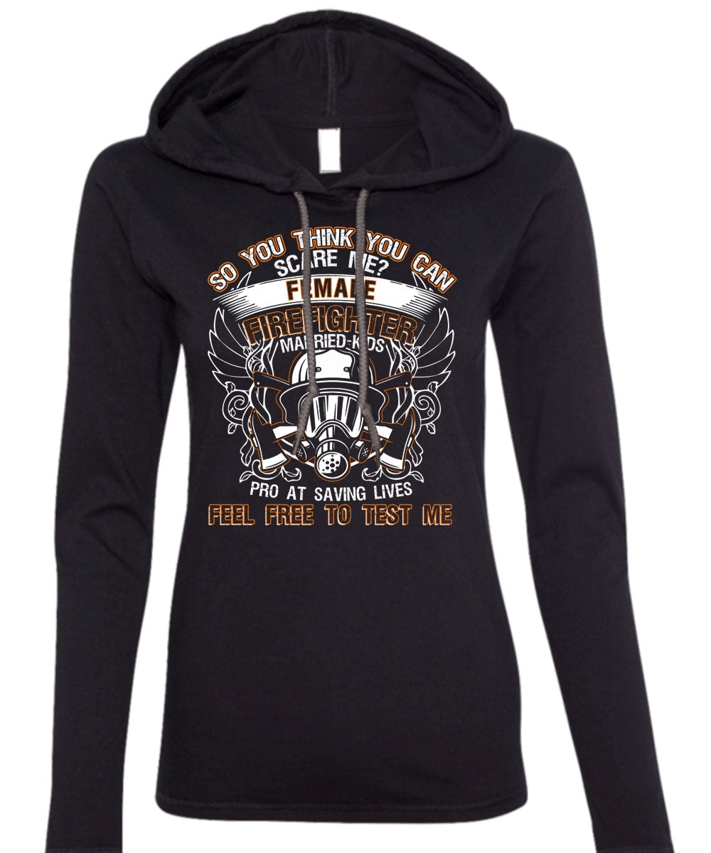 Female Firefighter Married Kids T Shirt, Feel Free To Test Me T Shirt (Anvil Ladies Ringspun Hooded)