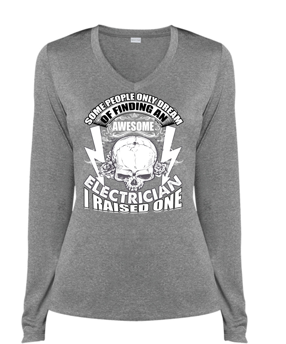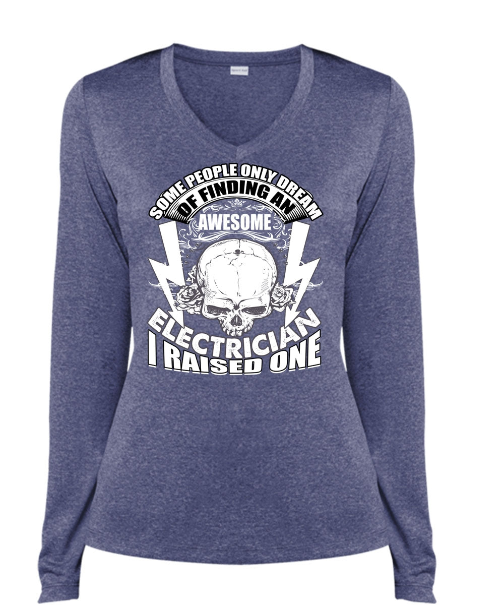 Finding An Awesome Electrician T Shirt, Being An Electrician T Shirt, Cool Shirt (Ladies LS Heather V-Neck)