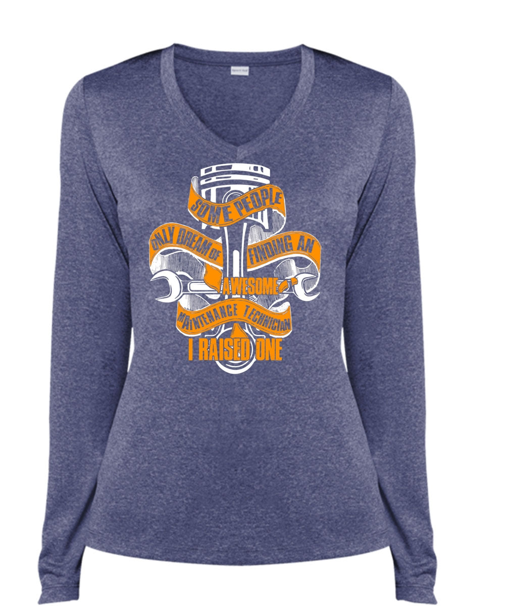 Finding An Awesome Maintenance Technician T Shirt, Being A Mechanic T Shirt, Cool Shirt (Ladies LS Heather V-Neck)