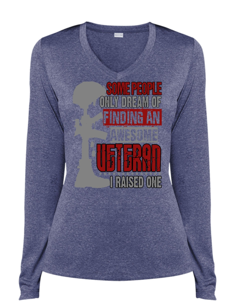 Finding An Awesome Veteran T Shirt, Being A Veteran T Shirt, Cool Shirt (Ladies LS Heather V-Neck)