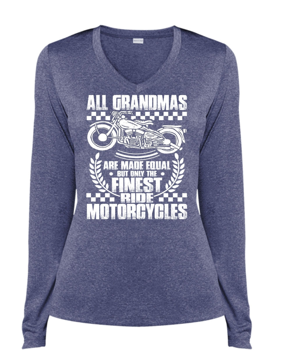 Finest Ride Motorcycles T Shirt, All Grandmas Are Made Equal T Shirt, Cool Shirt (Ladies LS Heather V-Neck)