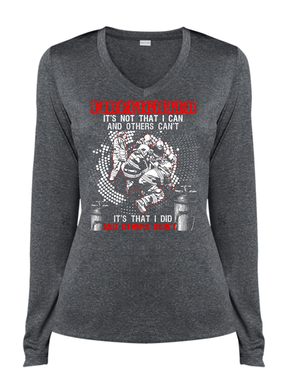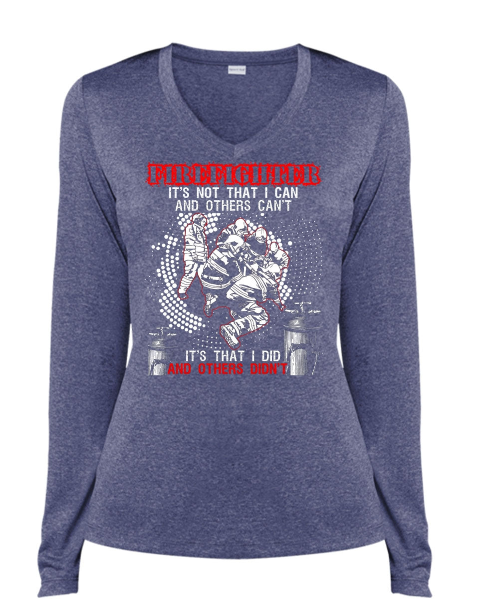 Firefighter It's Not That I Can T Shirt, Being A Firefighter T Shirt, Cool Shirt (Ladies LS Heather V-Neck)