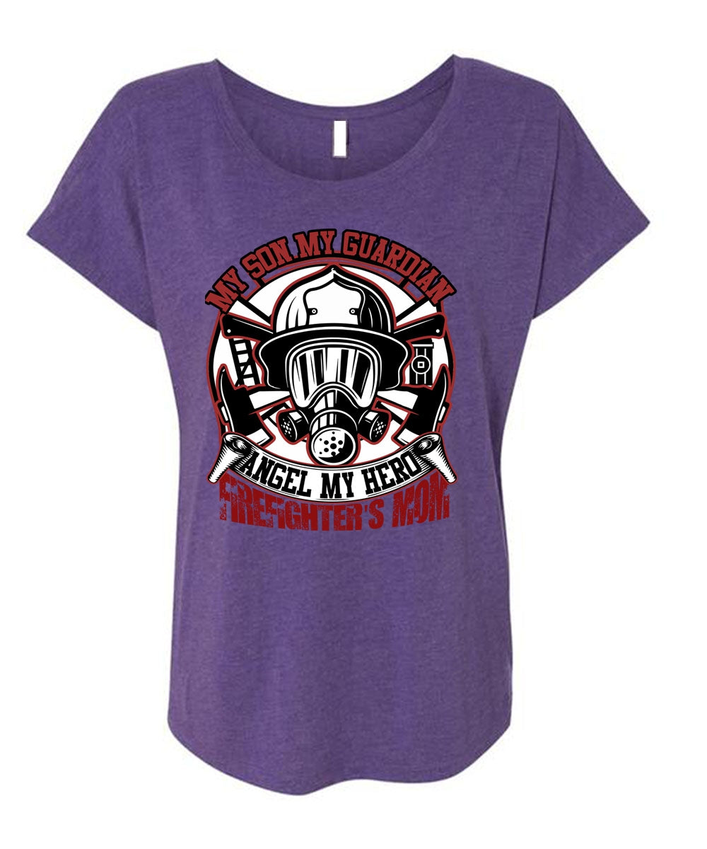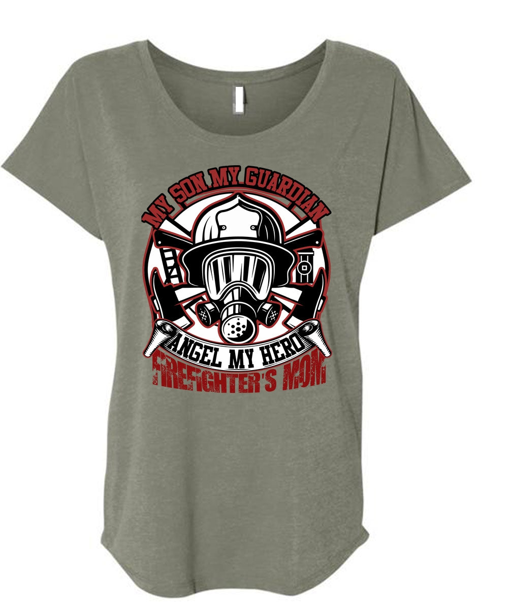 Firefighter's Mom T Shirt, My Son My Guardian Angel T Shirt, Cool Shirt (Ladies' Triblend Dolman Sleeve)