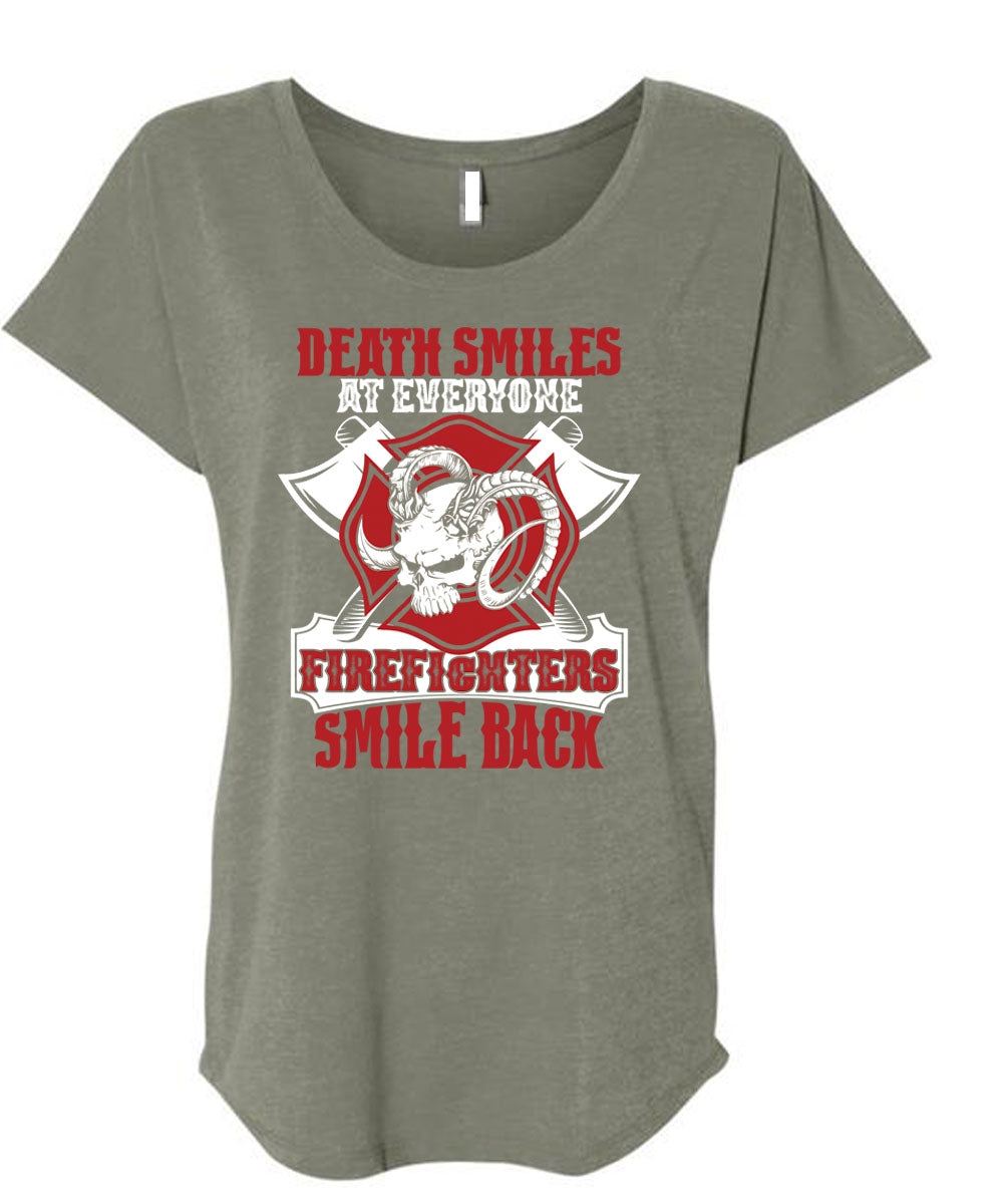 Firefighters Smile Back T Shirt, Being A Firefighter T Shirt, Cool Shirt (Ladies' Triblend Dolman Sleeve)