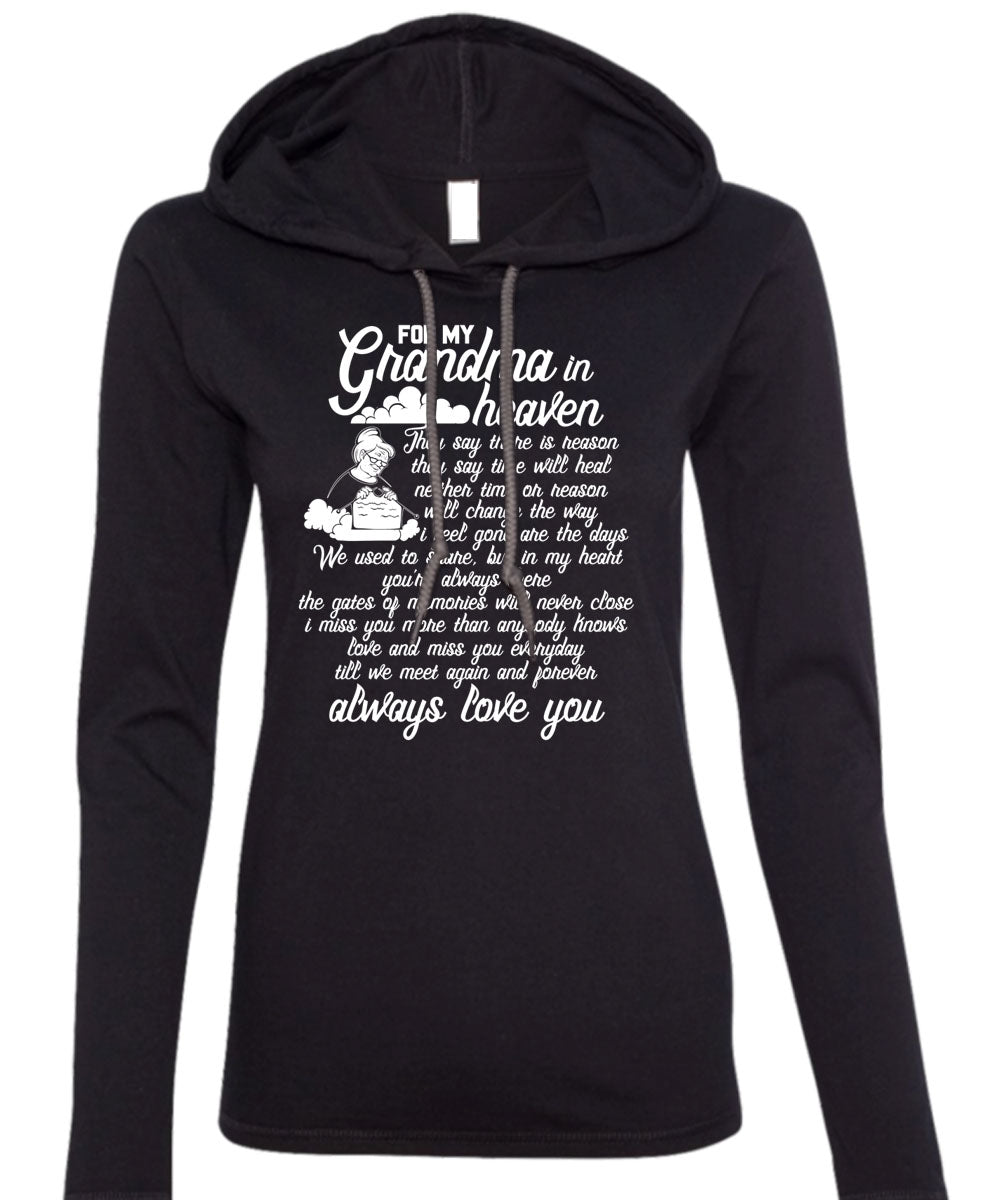 For My Grandma In Heaven T Shirt, Love You T Shirt (Anvil Ladies Ringspun Hooded)