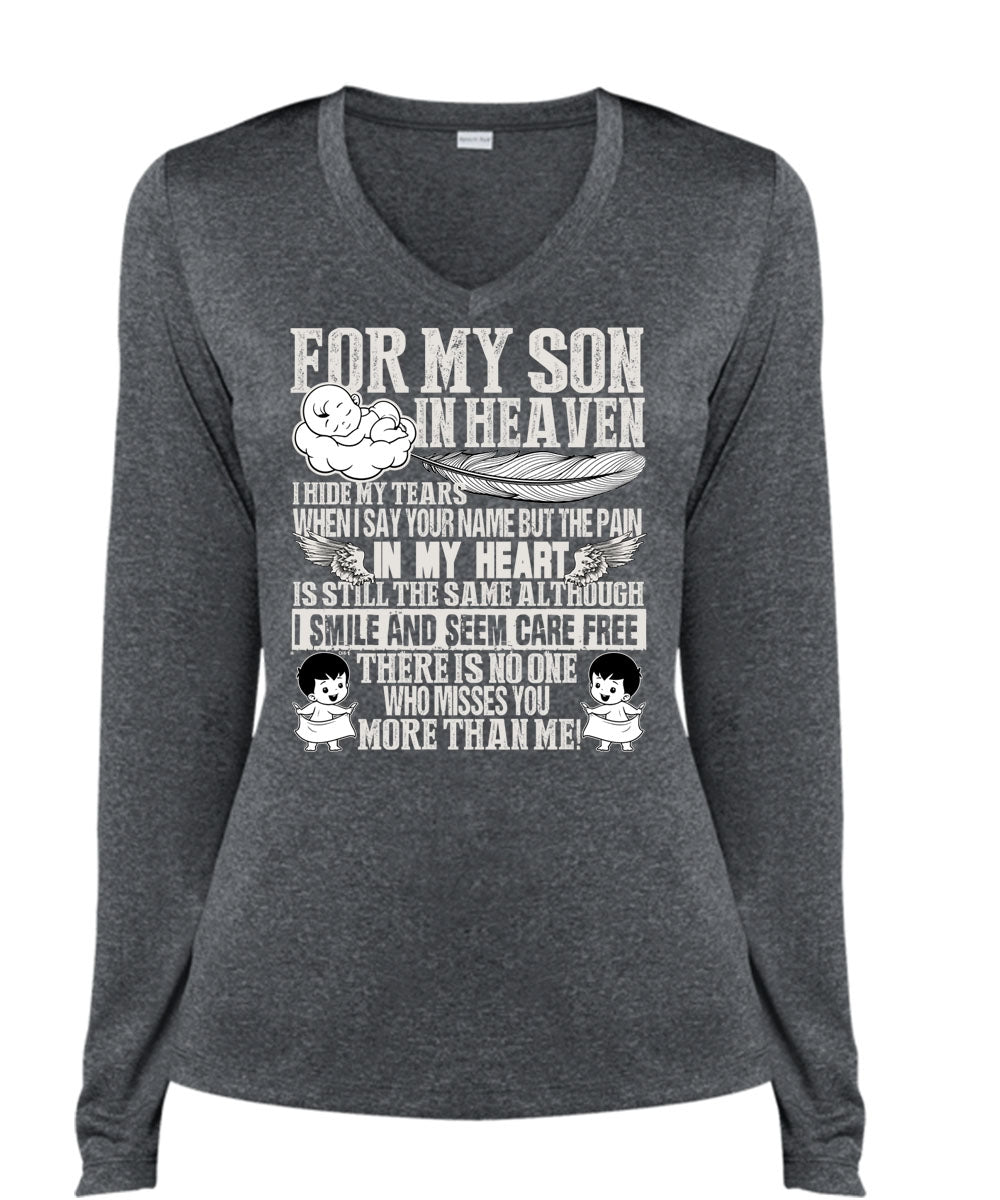 For My Son In Heaven T Shirt, Pain In My Heart T Shirt, Cool Shirt (Ladies LS Heather V-Neck)
