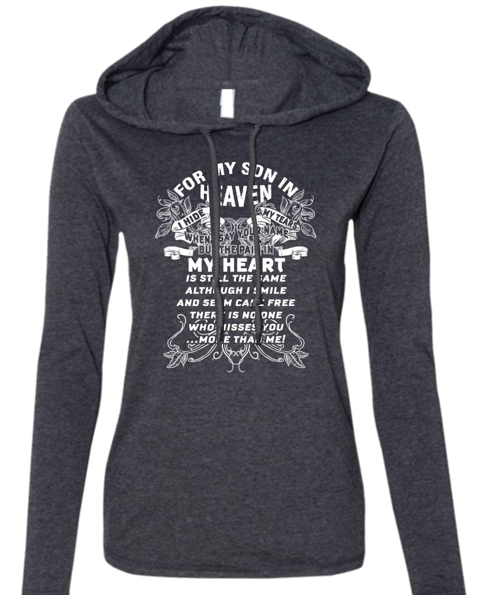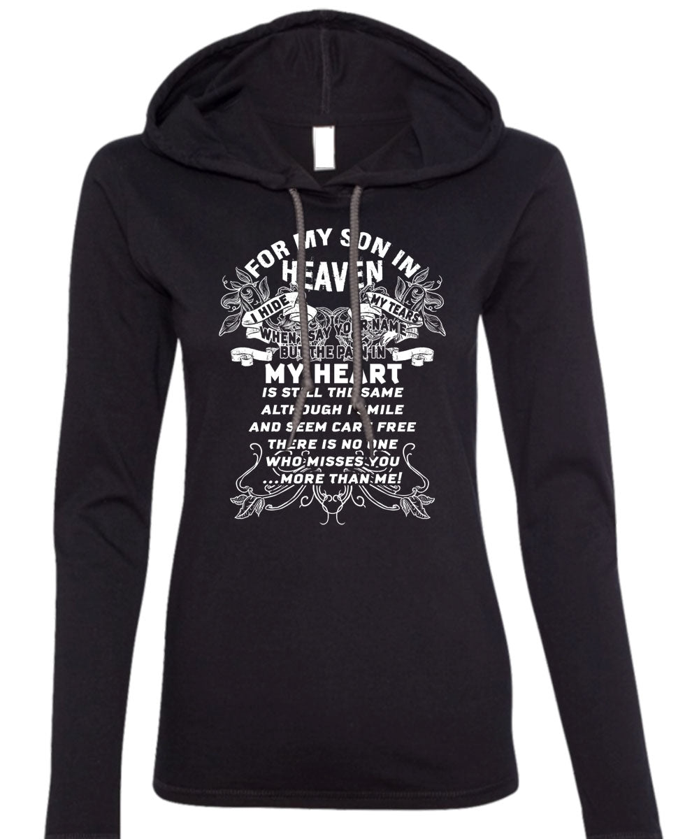 For My Son In Heaven T Shirt, The Pain In My Heart T Shirt (Anvil Ladies Ringspun Hooded)