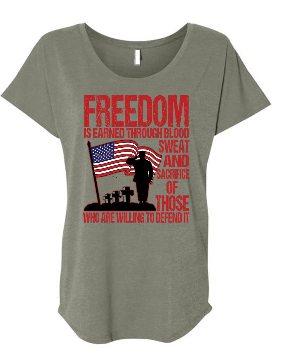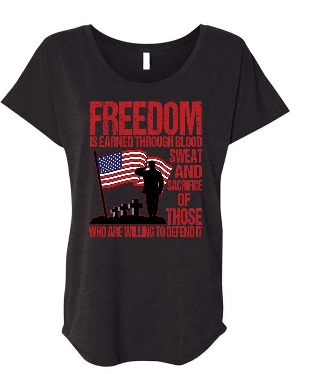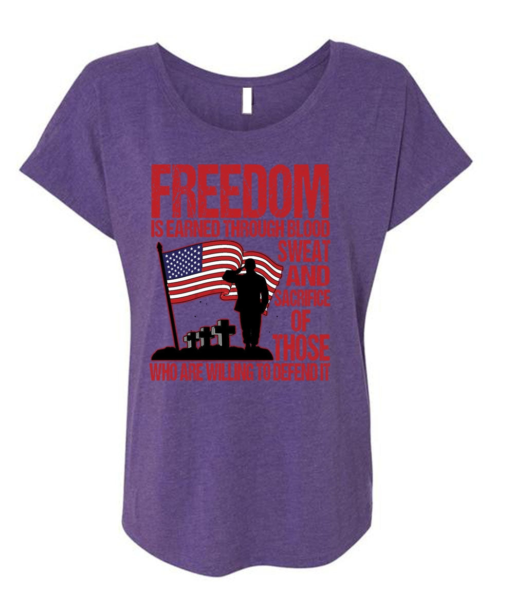 Freedom Is Earned T Shirt, Being A Veteran T Shirt, Cool Shirt (Ladies' Triblend Dolman Sleeve)