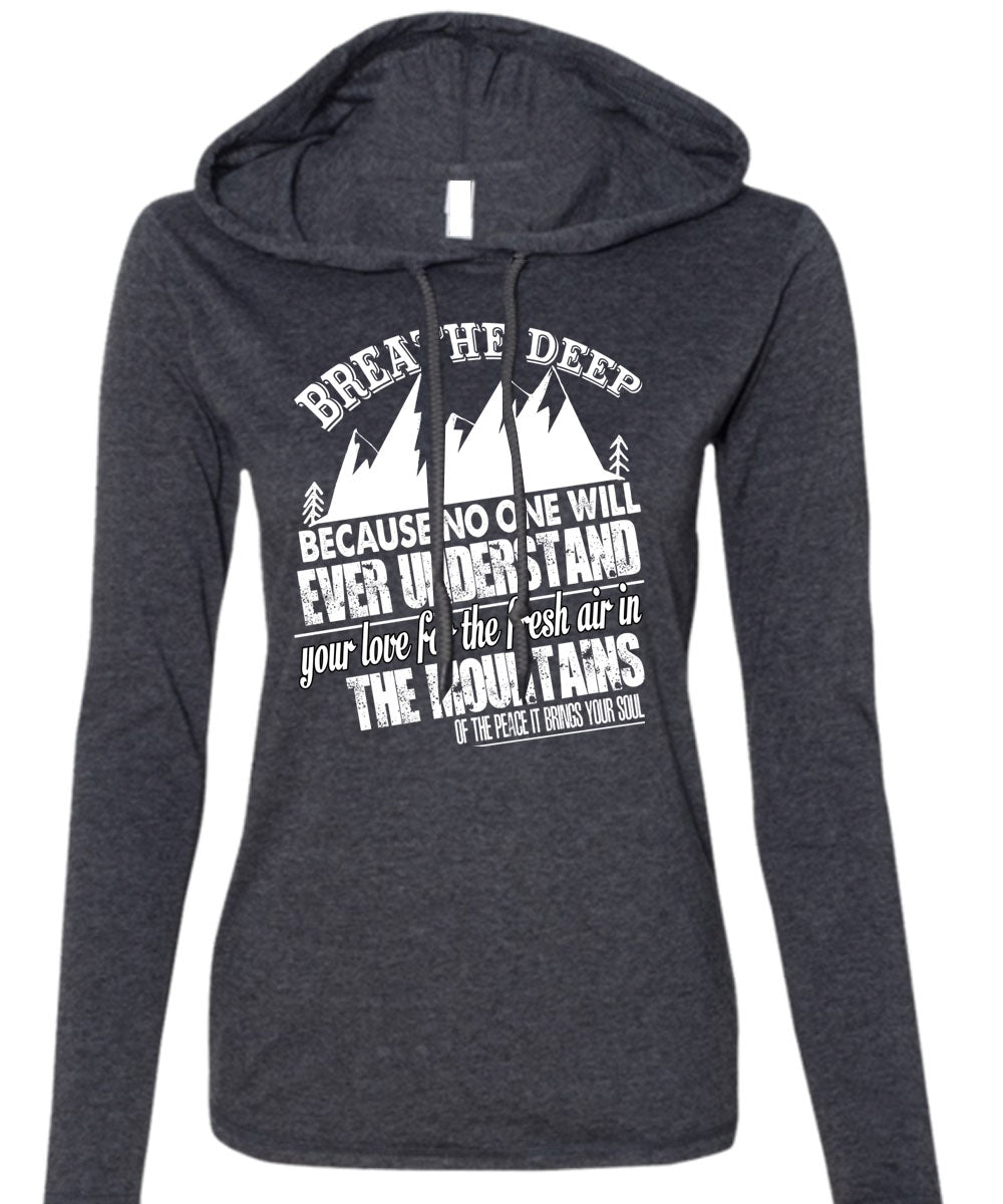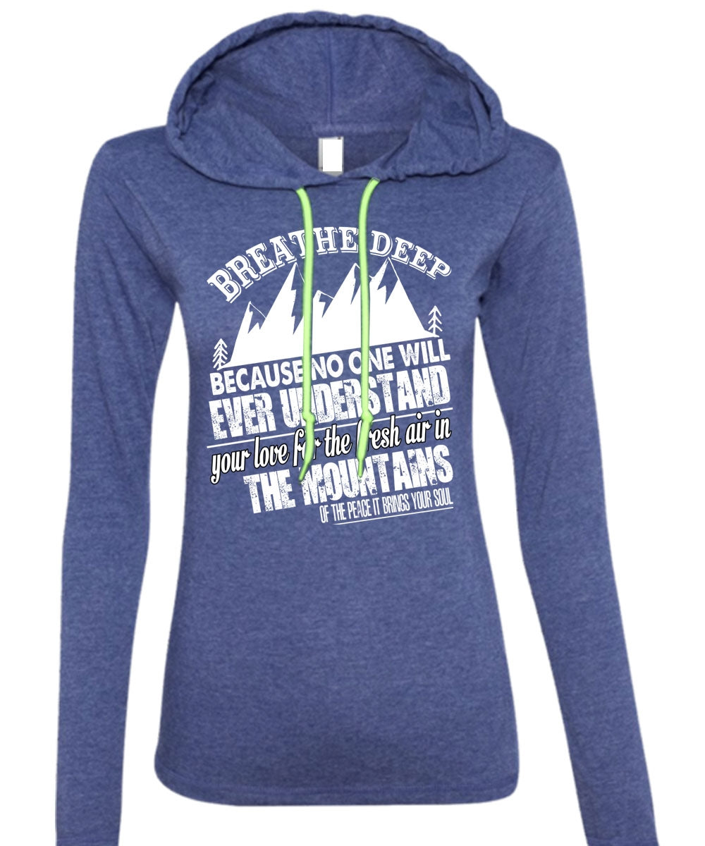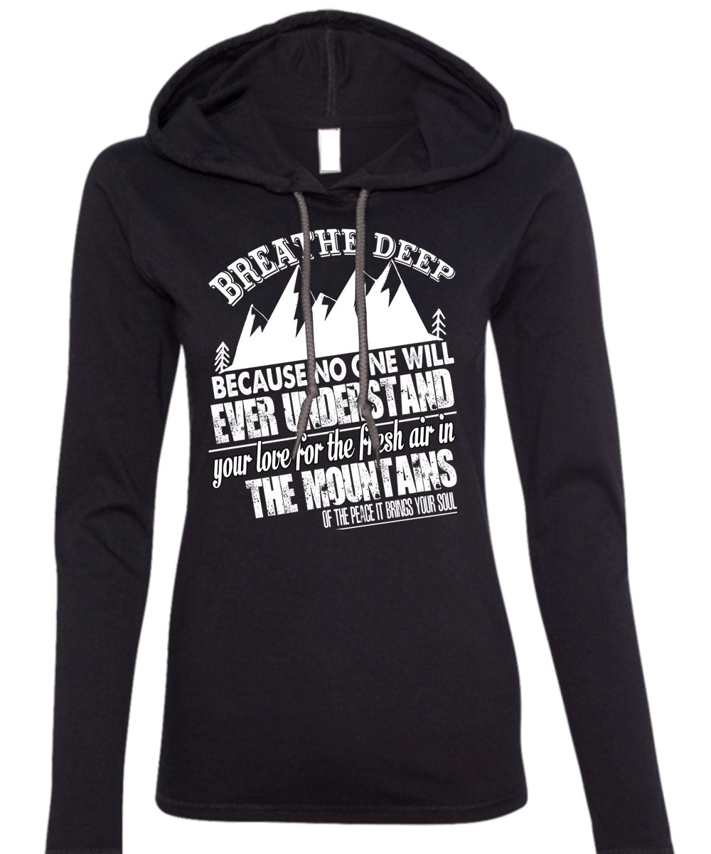 Fresh Air In The Mountains T Shirt, Breathe Deep T Shirt (Anvil Ladies Ringspun Hooded)