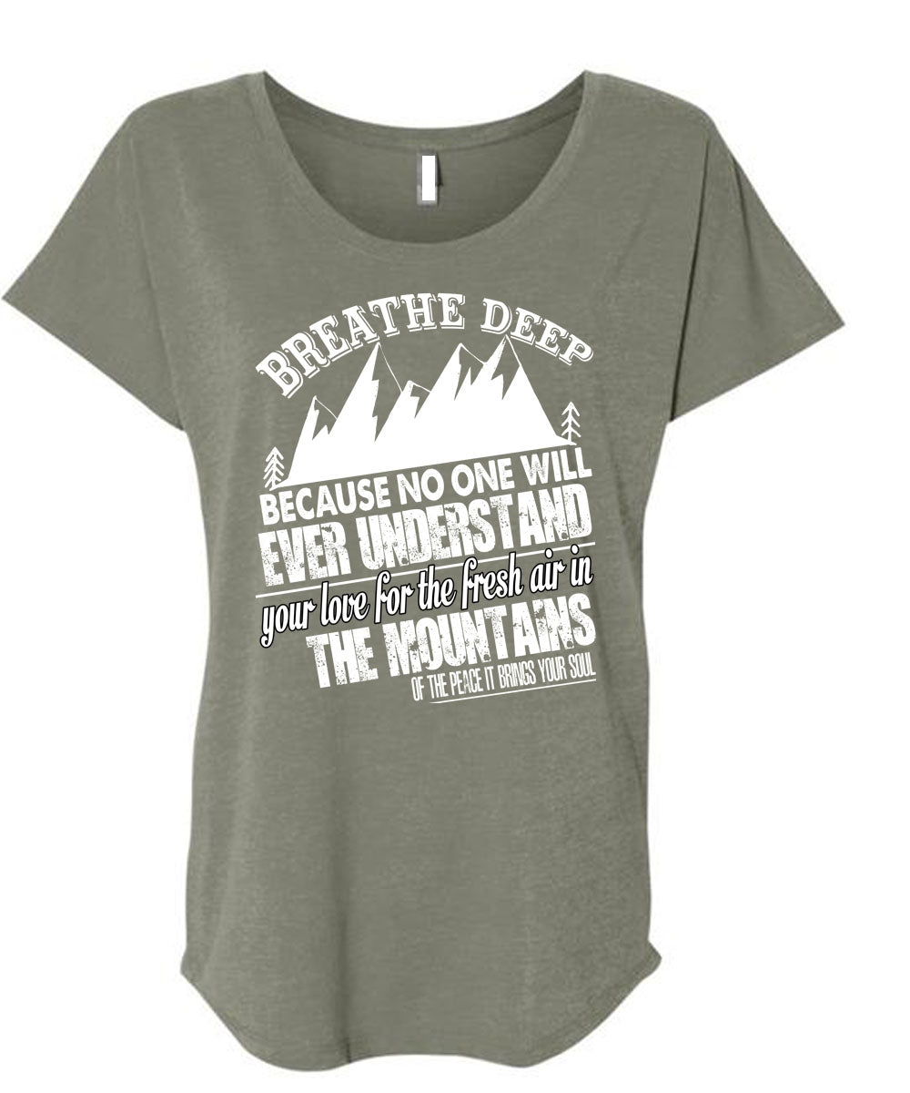 Fresh Air In The Mountains T Shirt, Breathe Deep T Shirt, Cool Shirt (Ladies' Triblend Dolman Sleeve)