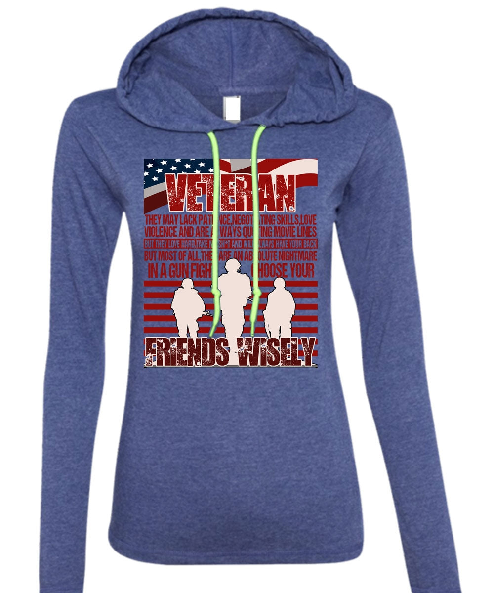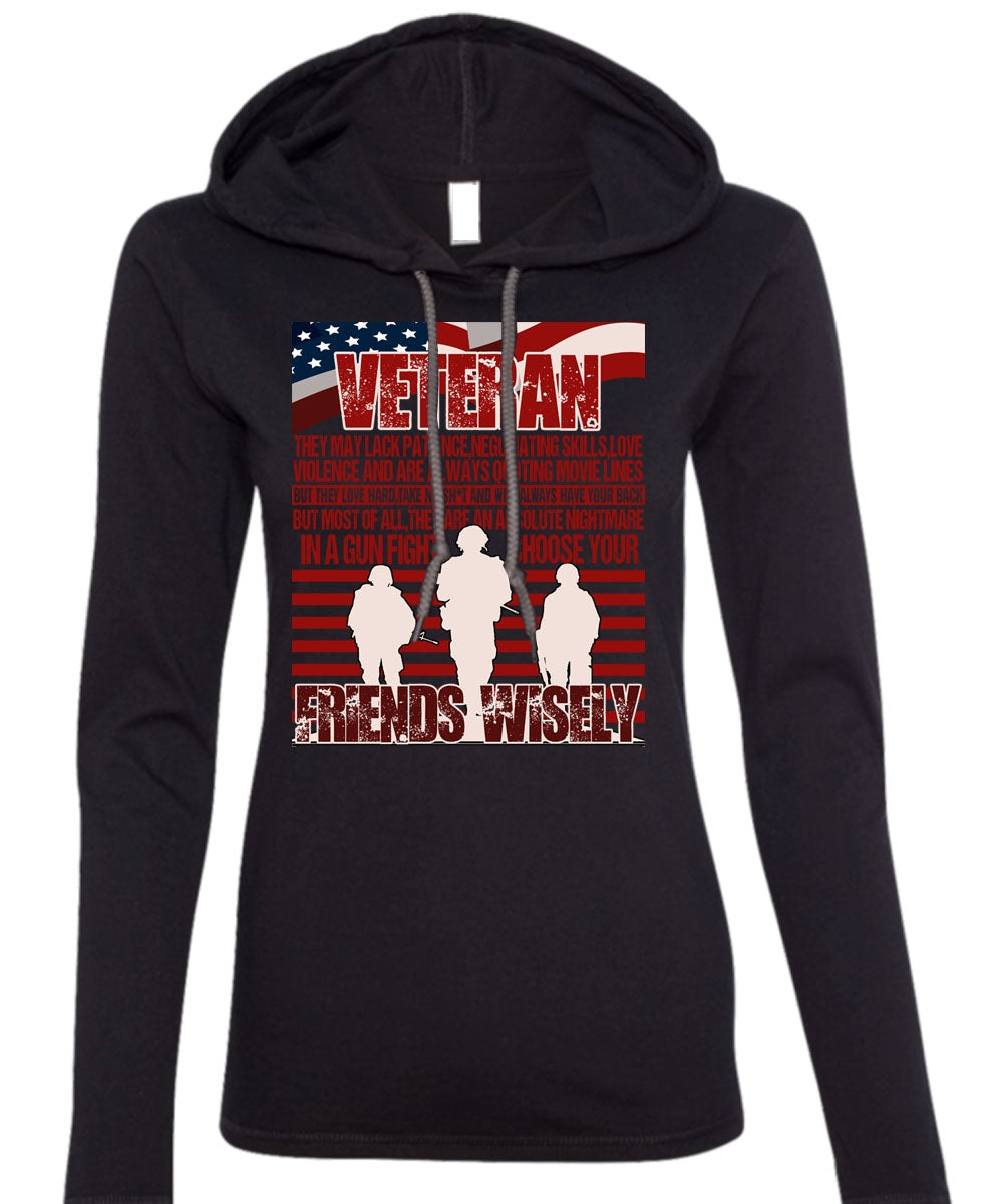 Friends Wisely T Shirt, Being A Veteran T Shirt (Anvil Ladies Ringspun Hooded)