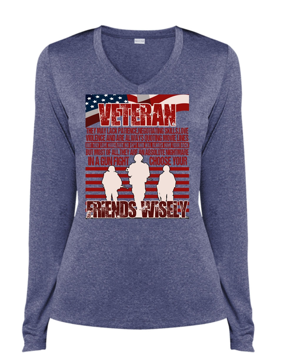 Friends Wisely T Shirt, Being A Veteran T Shirt, Cool Shirt (Ladies LS Heather V-Neck)