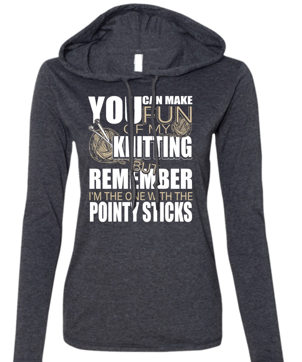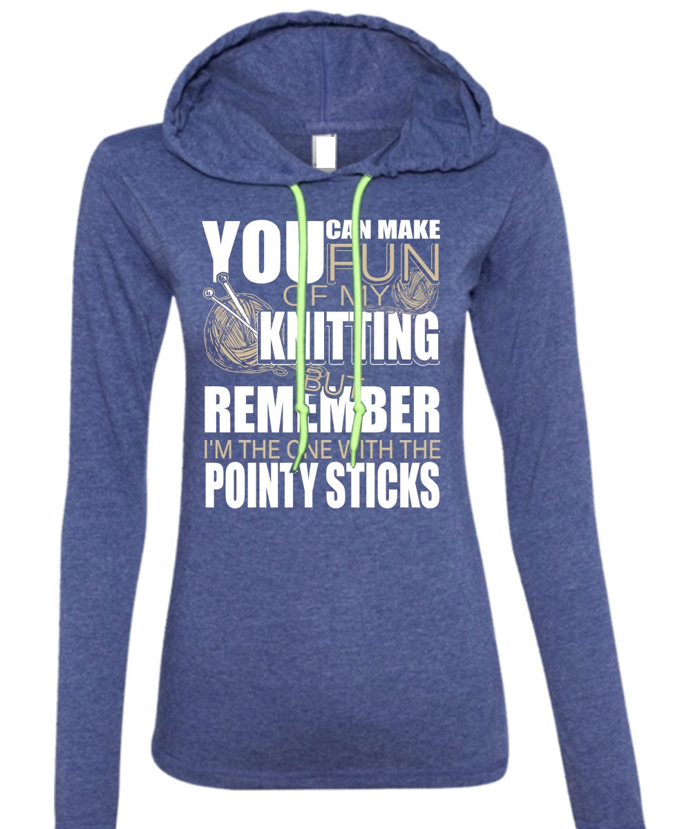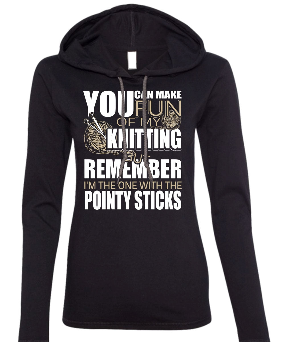 Fun Of My Knitting T Shirt, Pointy Sticks T Shirt (Anvil Ladies Ringspun Hooded)