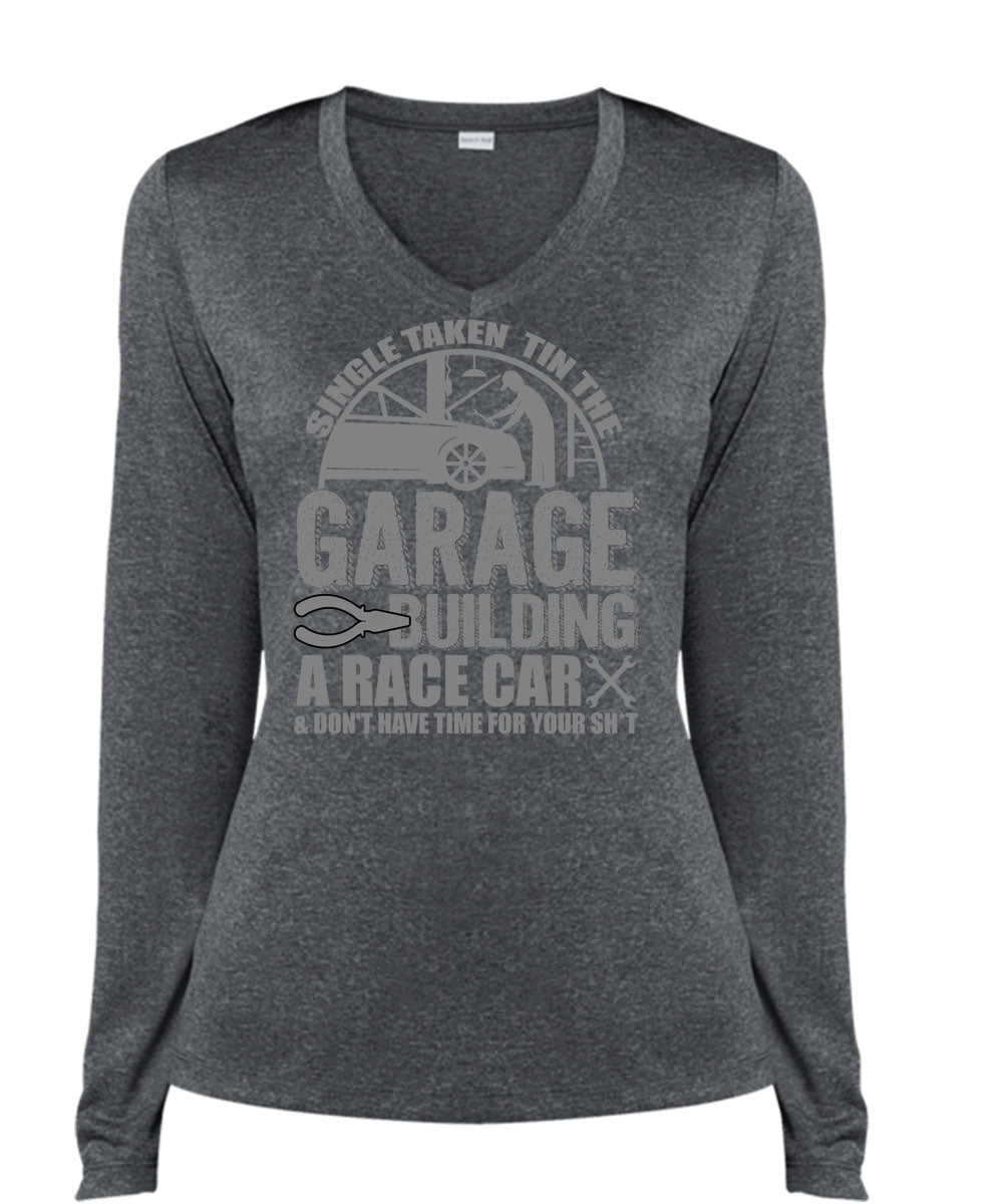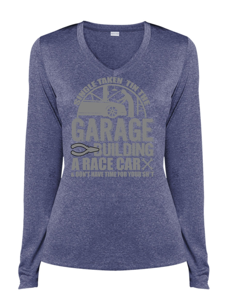 Garage Building A Race Car T Shirt, Being A Mechanic T Shirt, Cool Shirt (Ladies LS Heather V-Neck)