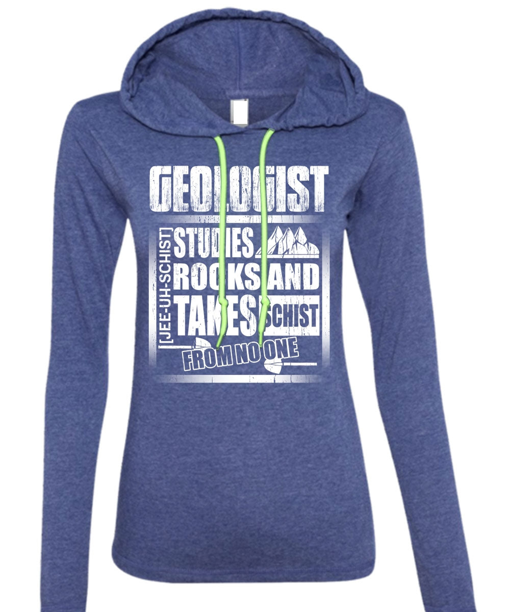 Geologist Studies Rocks T Shirt, I Love Geologist T Shirt (Anvil Ladies Ringspun Hooded)