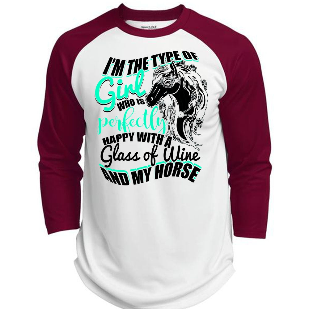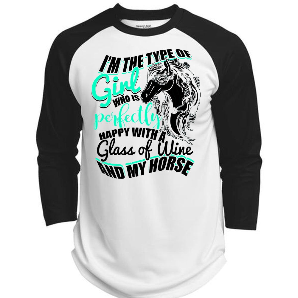 Glass Of Wine And My Horse T Shirt, I Love Horse T Shirt, Awesome T-Shirts (Polyester Game Baseball Jersey)