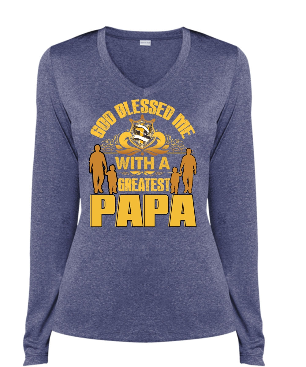 God Blessed Me With A Greatest Papa T Shirt, Being A Papa T Shirt, Cool Shirt (Ladies LS Heather V-Neck)