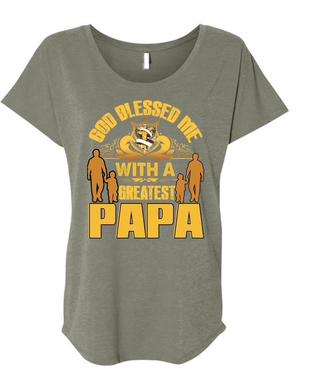 God Blessed Me With A Greatest Papa T Shirt, Being A Papa T Shirt, Cool Shirt (Ladies' Triblend Dolman Sleeve)