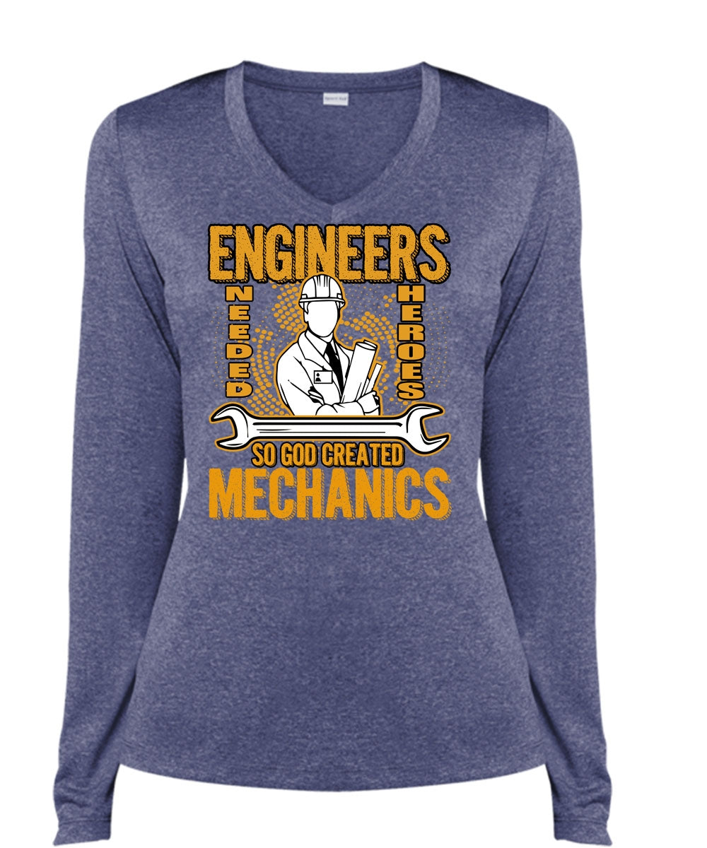 God Created Mechanics T Shirt, I Love Mechanic T Shirt, Cool Shirt (Ladies LS Heather V-Neck)