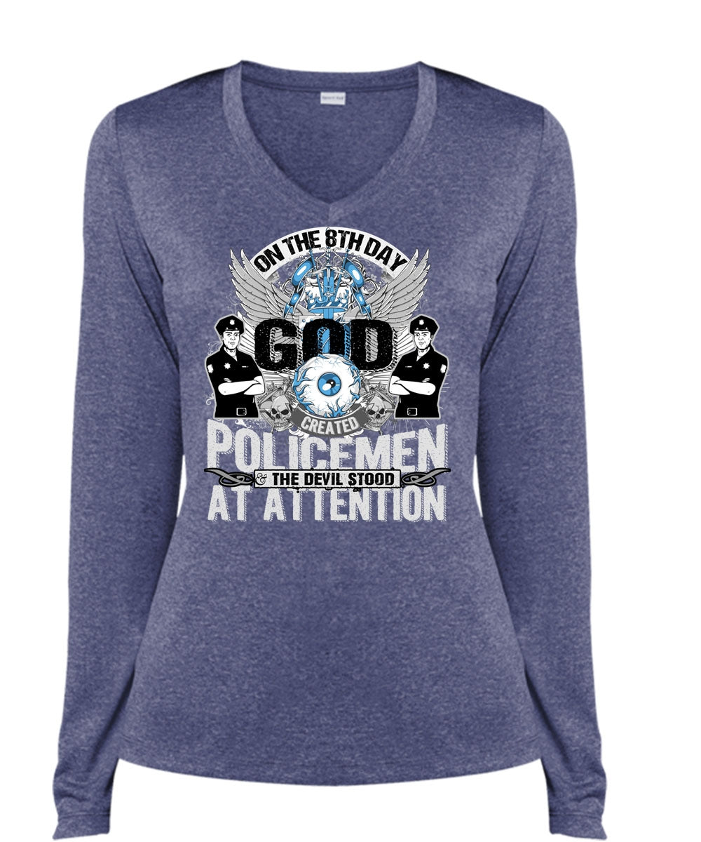God Created Policemen T Shirt, I Love Police T Shirt, Cool Shirt (Ladies LS Heather V-Neck)