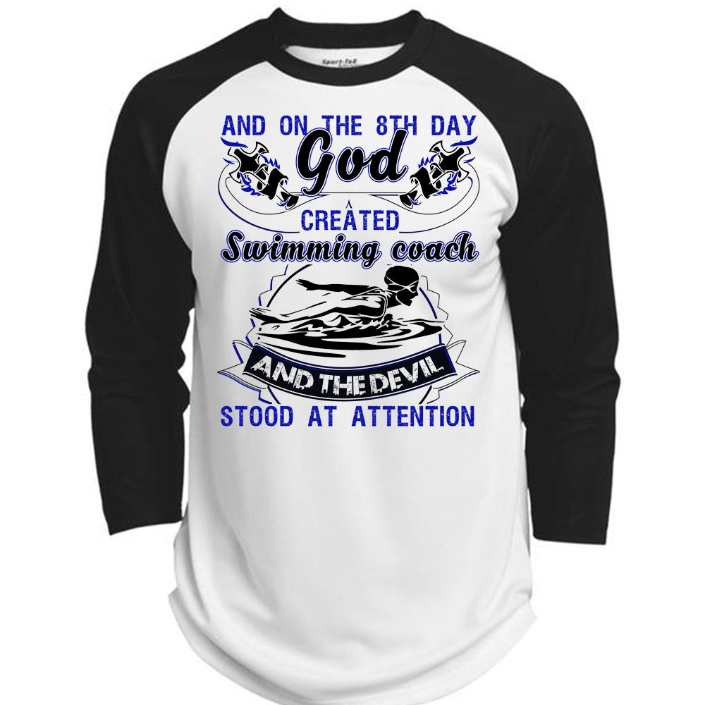God Created Swimming Coach T Shirt, I Love Swimming T Shirt, Awesome T-Shirts (Polyester Game Baseball Jersey)