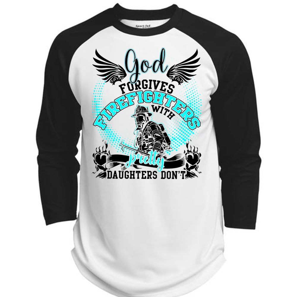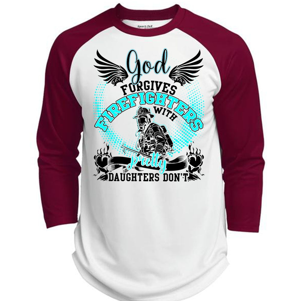 God Forgives Firefighters T Shirt, I Love Firefighter T Shirt, Awesome T-Shirts (Polyester Game Baseball Jersey)