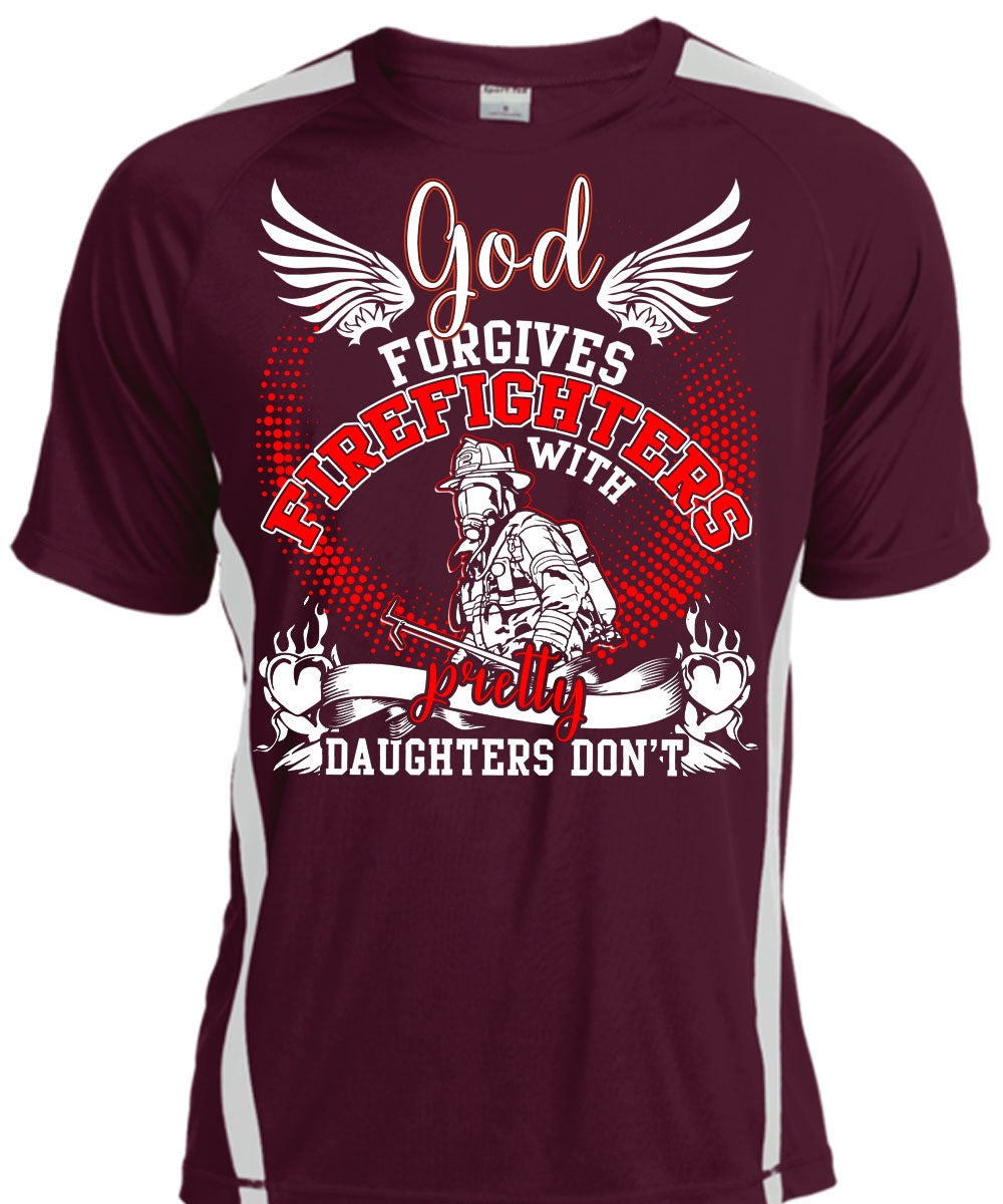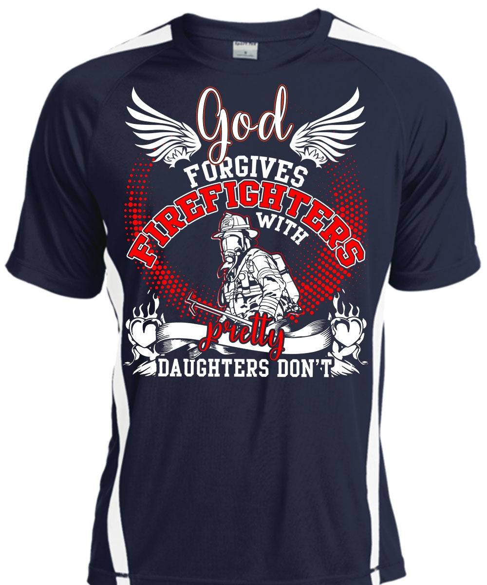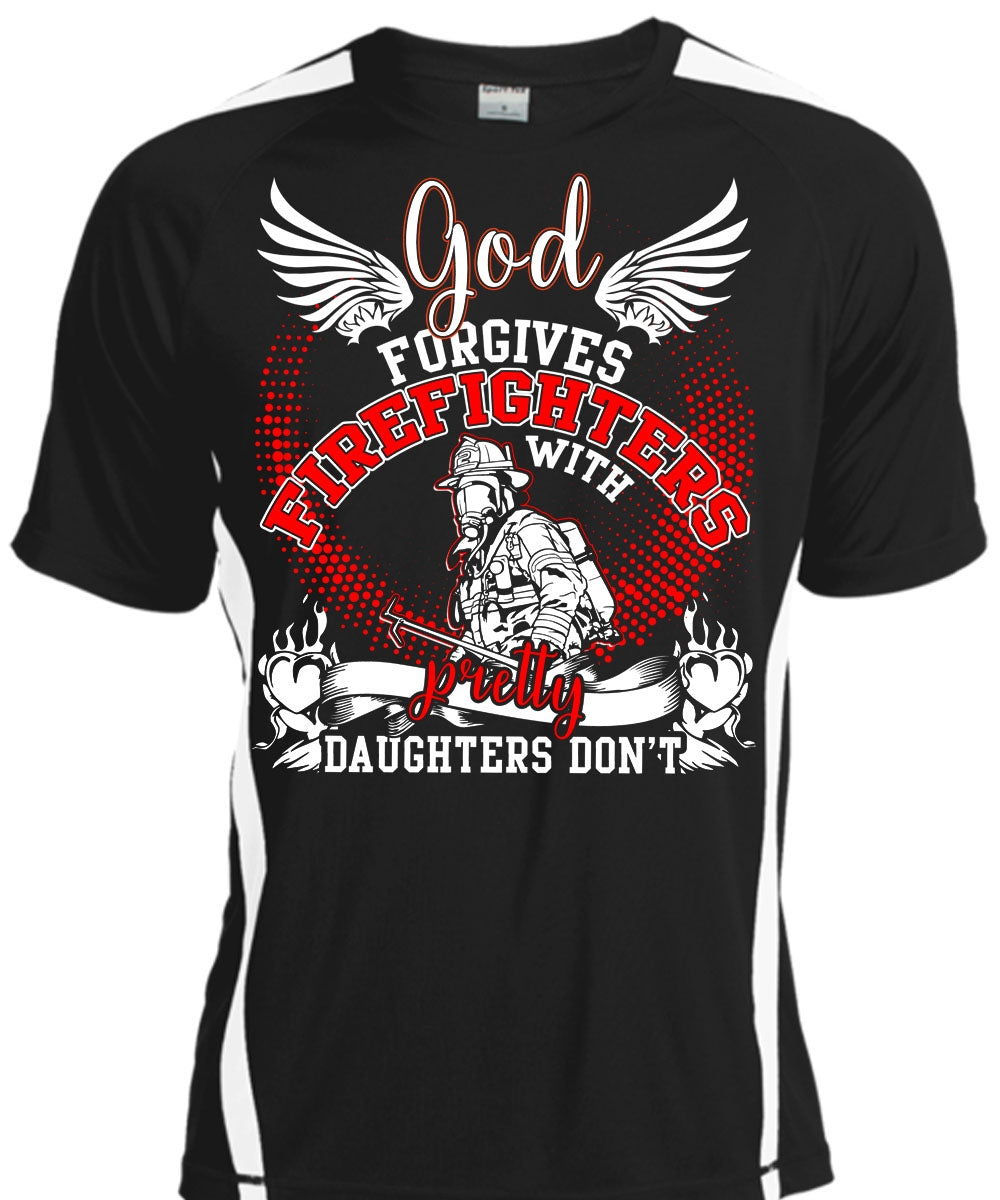 God Forgives Firefighters T Shirt, Pretty Daughters Don't T Shirt, Cool Shirt
