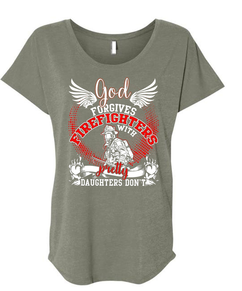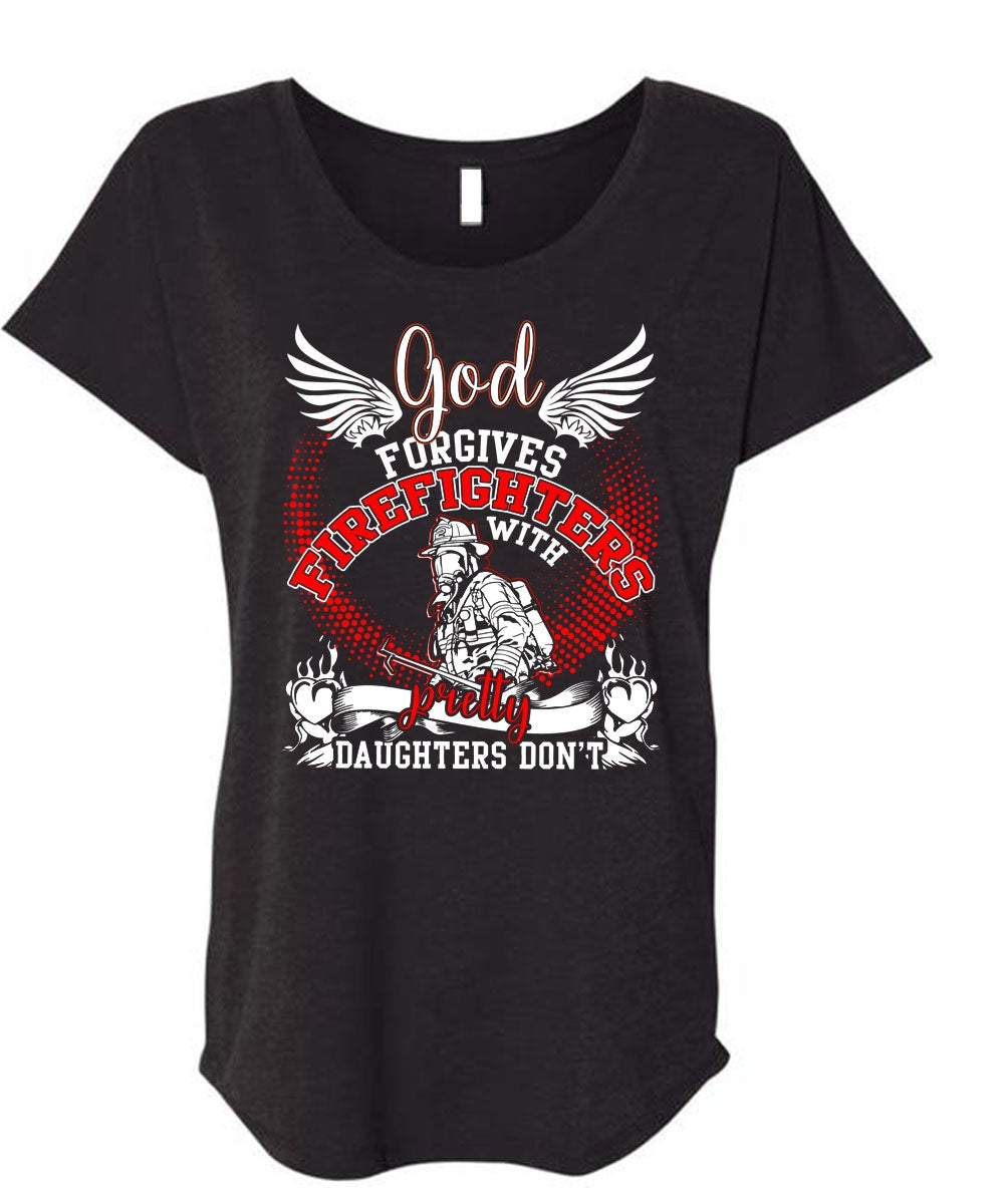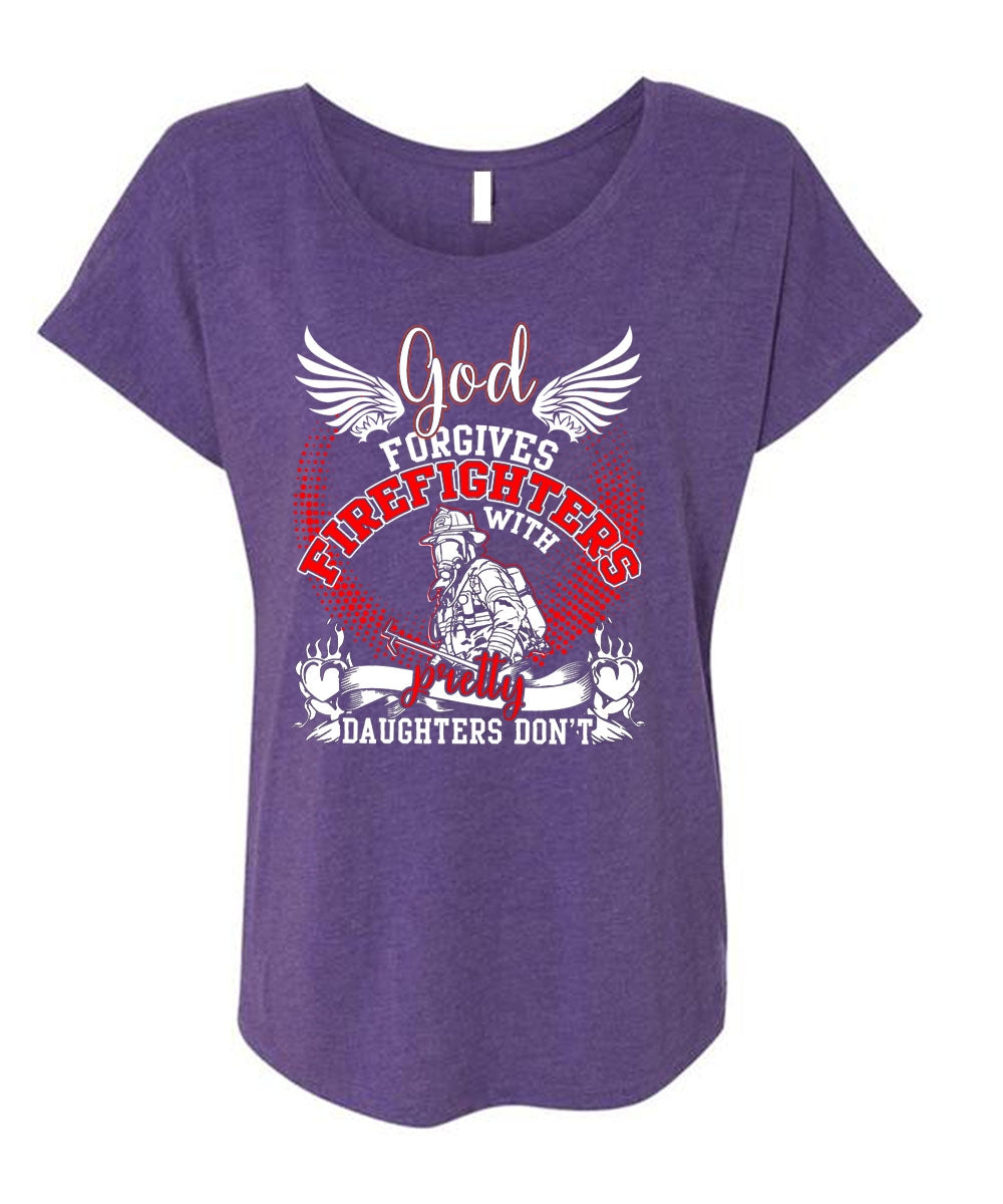 God Forgives Firefighters T Shirt, Pretty Daughters Don't T Shirt, Cool Shirt (Ladies' Triblend Dolman Sleeve)