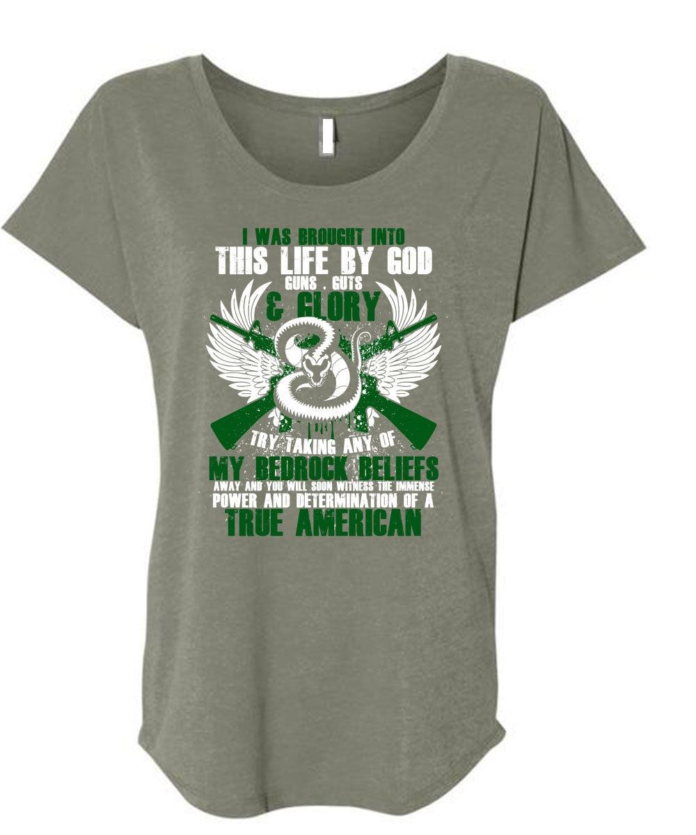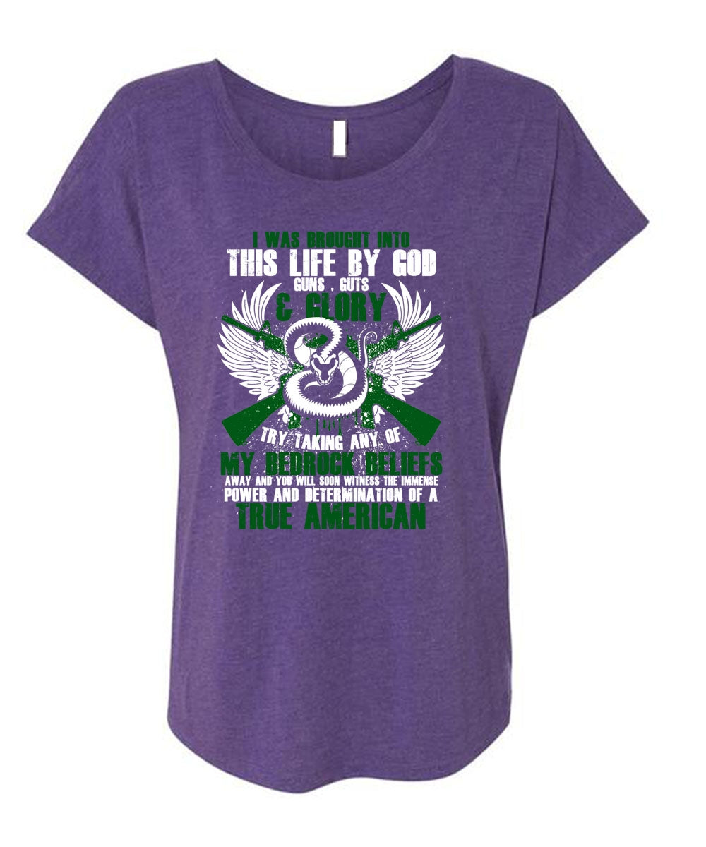 God Guns T Shirt, True American T Shirt, Cool Shirt (Ladies' Triblend Dolman Sleeve)