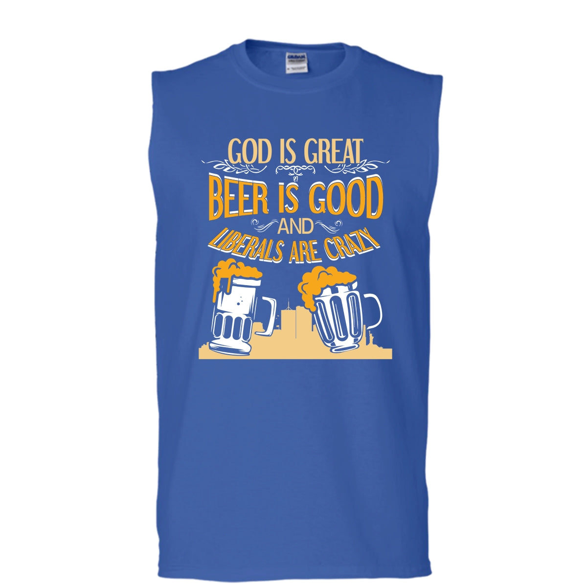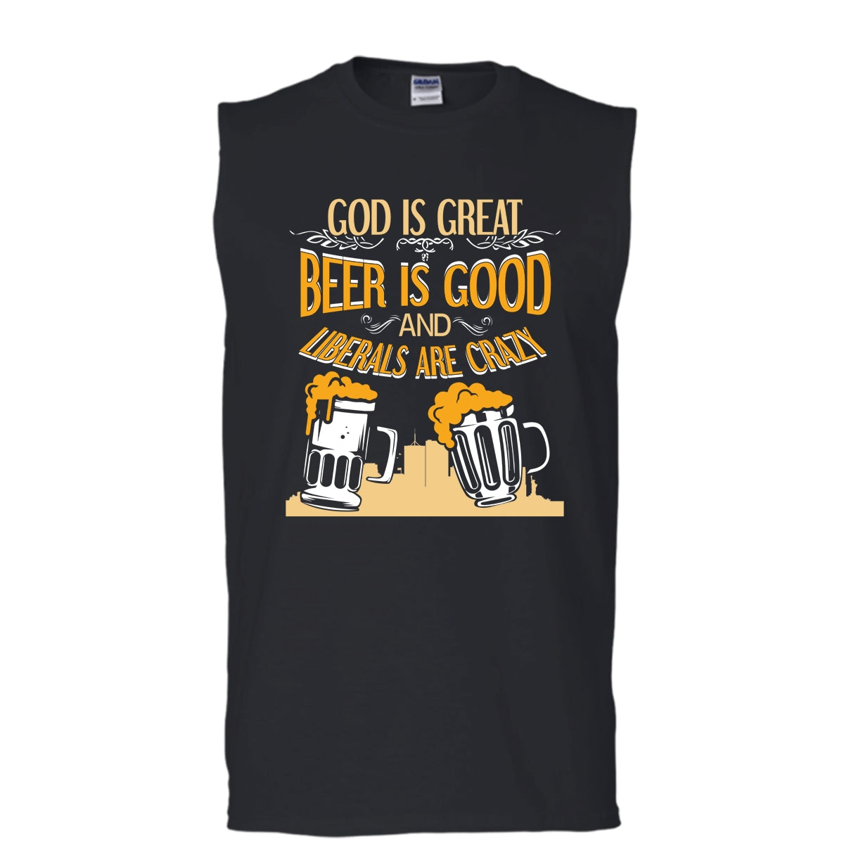 God Is Great T Shirt, Beer Is Good Liberals Are Crazy Tank Top (Men's Cotton Sleeveless)