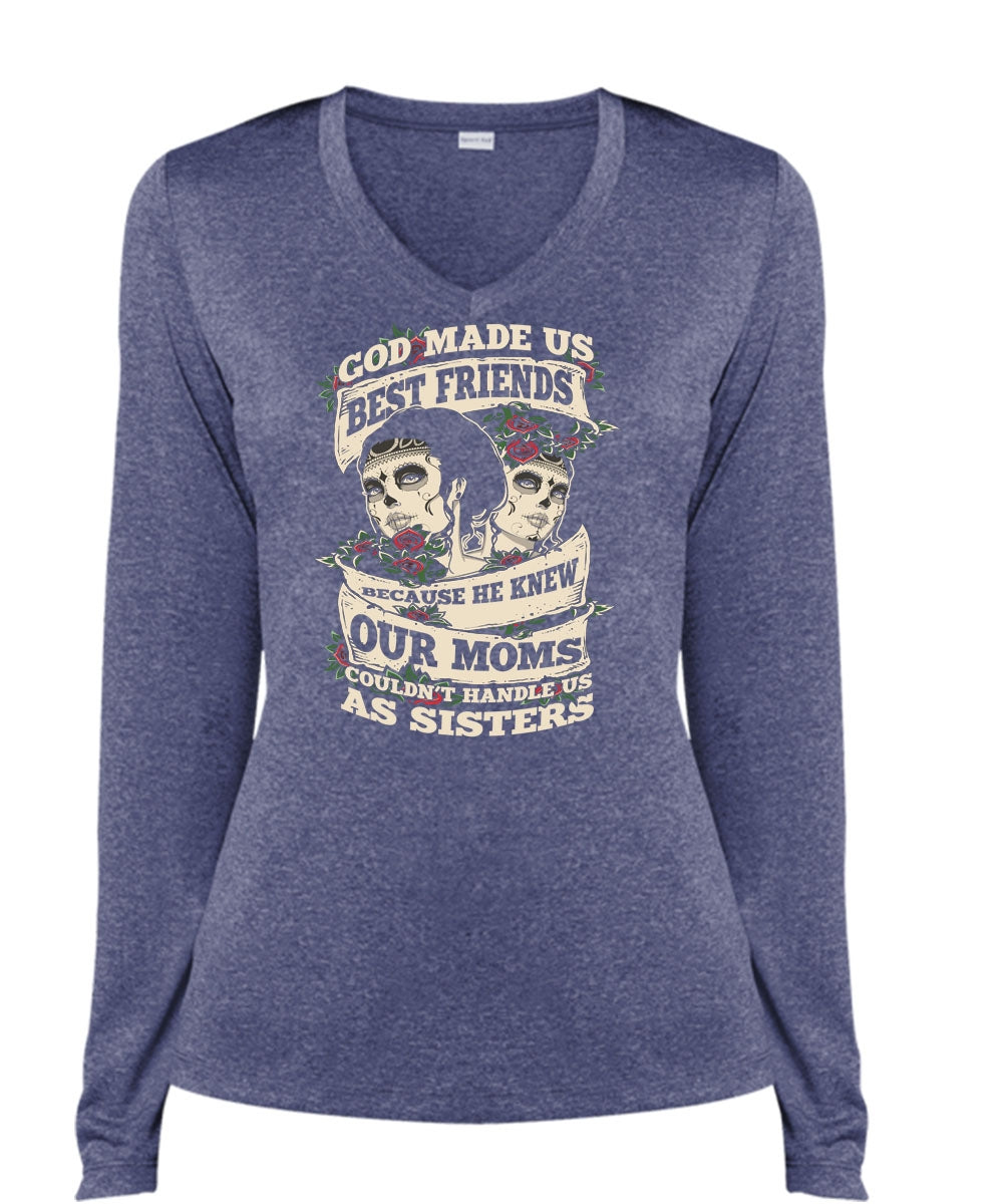 God Made Us Best Friends T Shirt, He Knew Our Moms T Shirt, Cool Shirt (Ladies LS Heather V-Neck)
