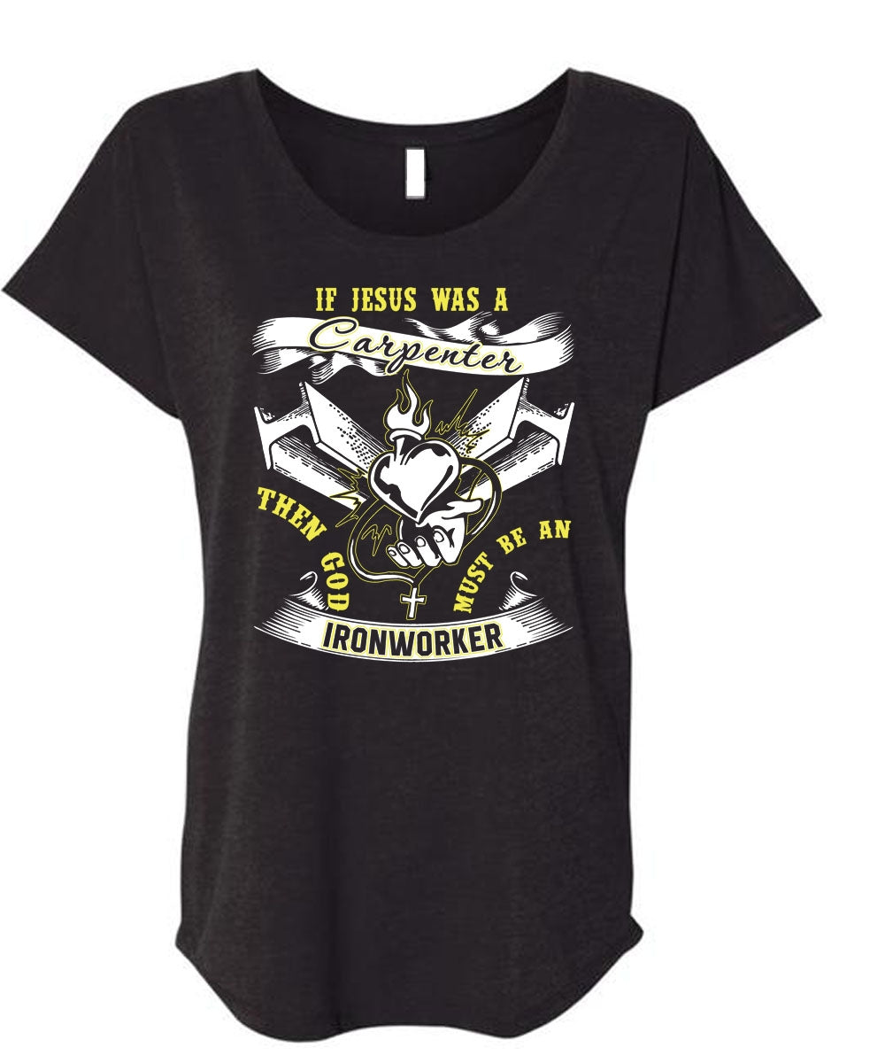 God Must Be An Ironworker T Shirt, Jesus Was A Carpenter T Shirt, Cool Shirt (Ladies' Triblend Dolman Sleeve)