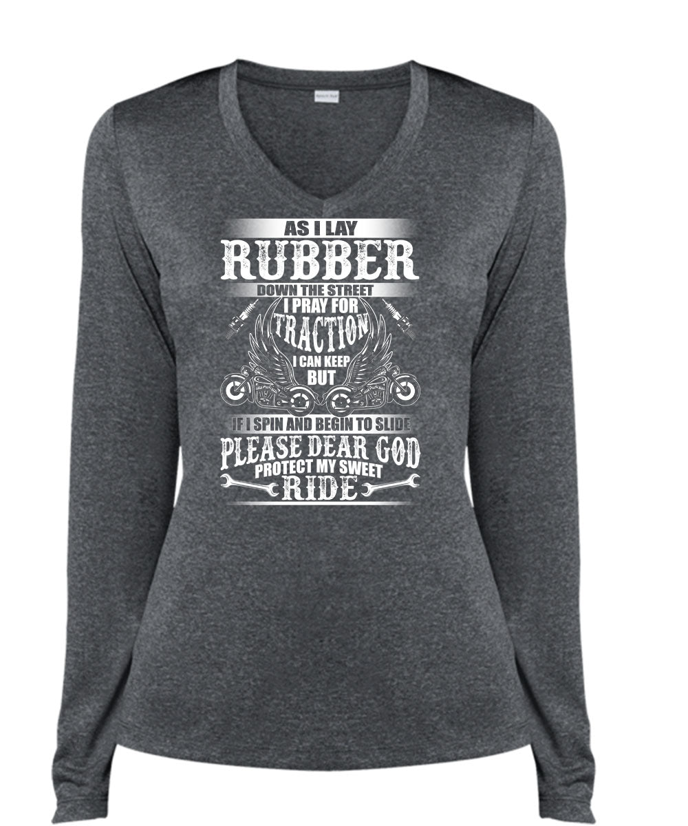 God Protect My Sweet Ride T Shirt, I Lay Rubber T Shirt, Cool Shirt (Ladies LS Heather V-Neck)