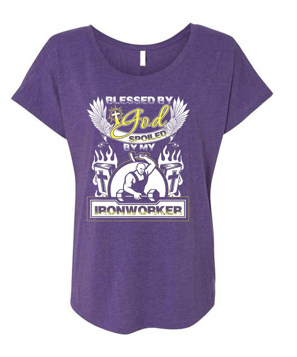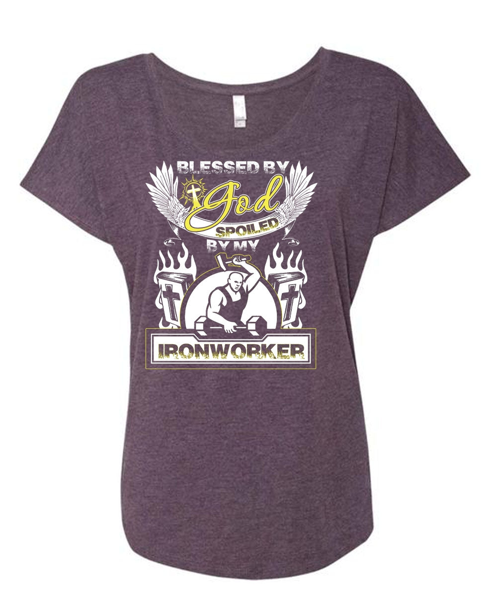 God Spoiled By My Ironworker T Shirt, Being An Ironworker T Shirt, Cool Shirt (Ladies' Triblend Dolman Sleeve)