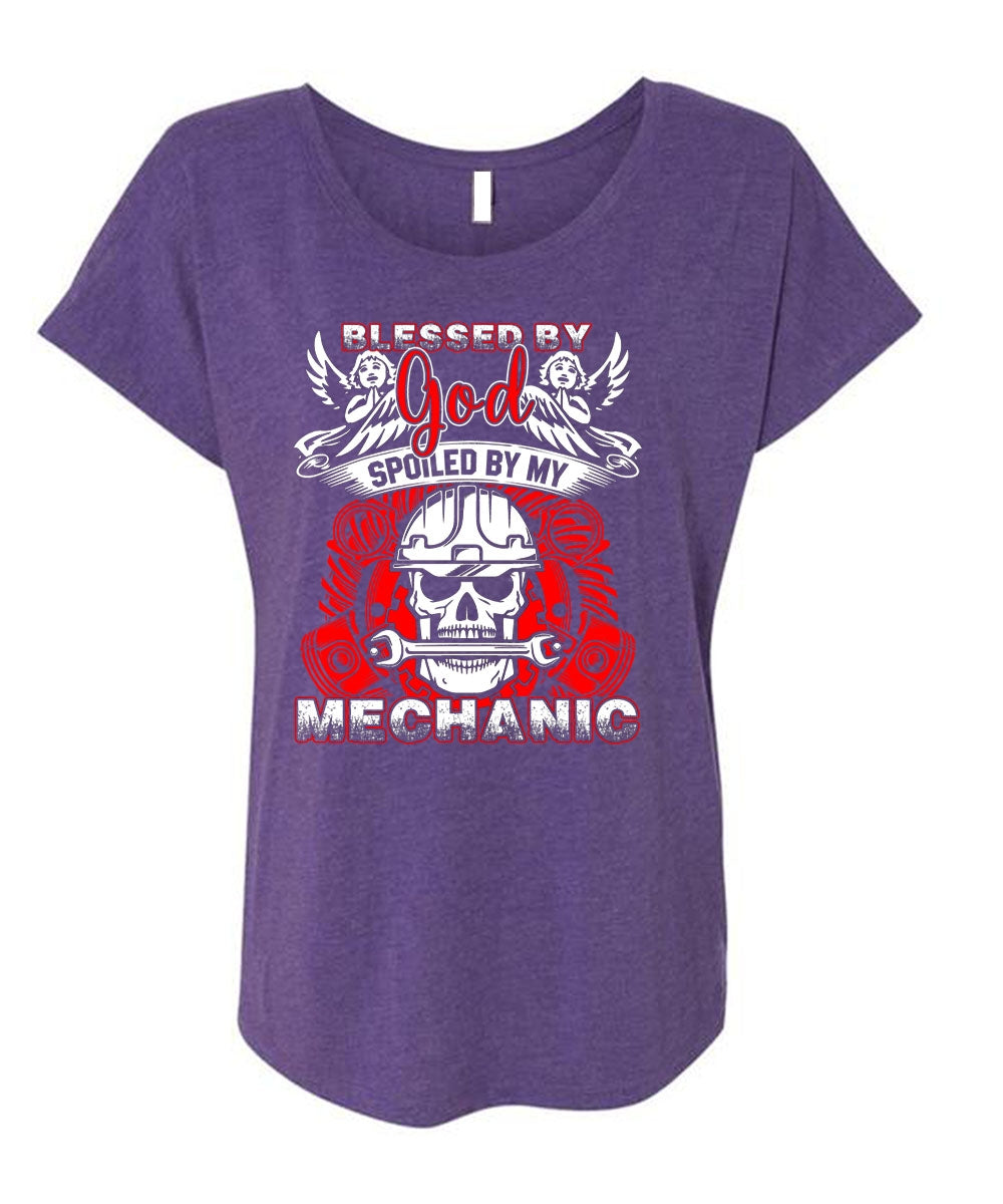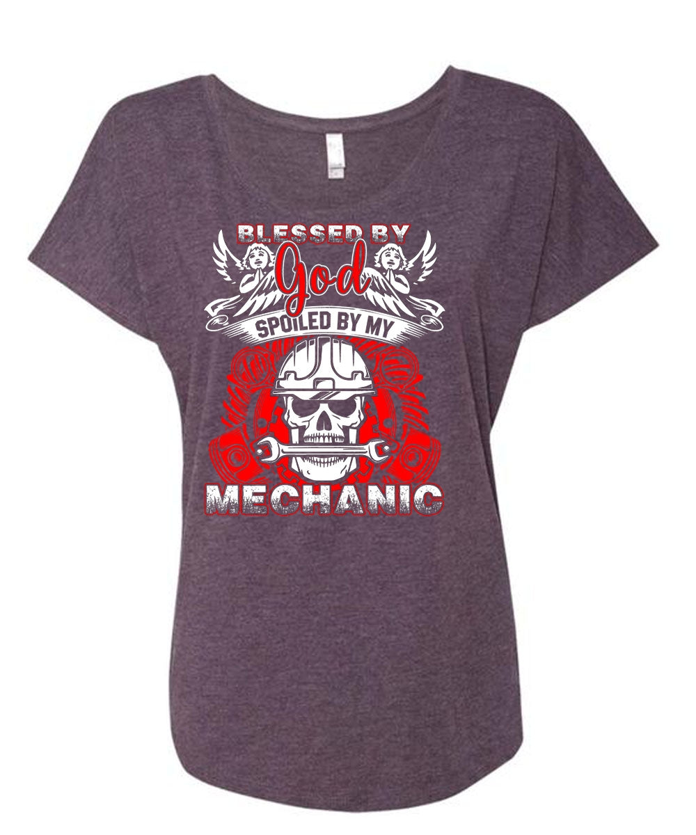 God Spoiled By My Mechanic T Shirt, I Love Mechanic T Shirt, Cool Shirt (Ladies' Triblend Dolman Sleeve)