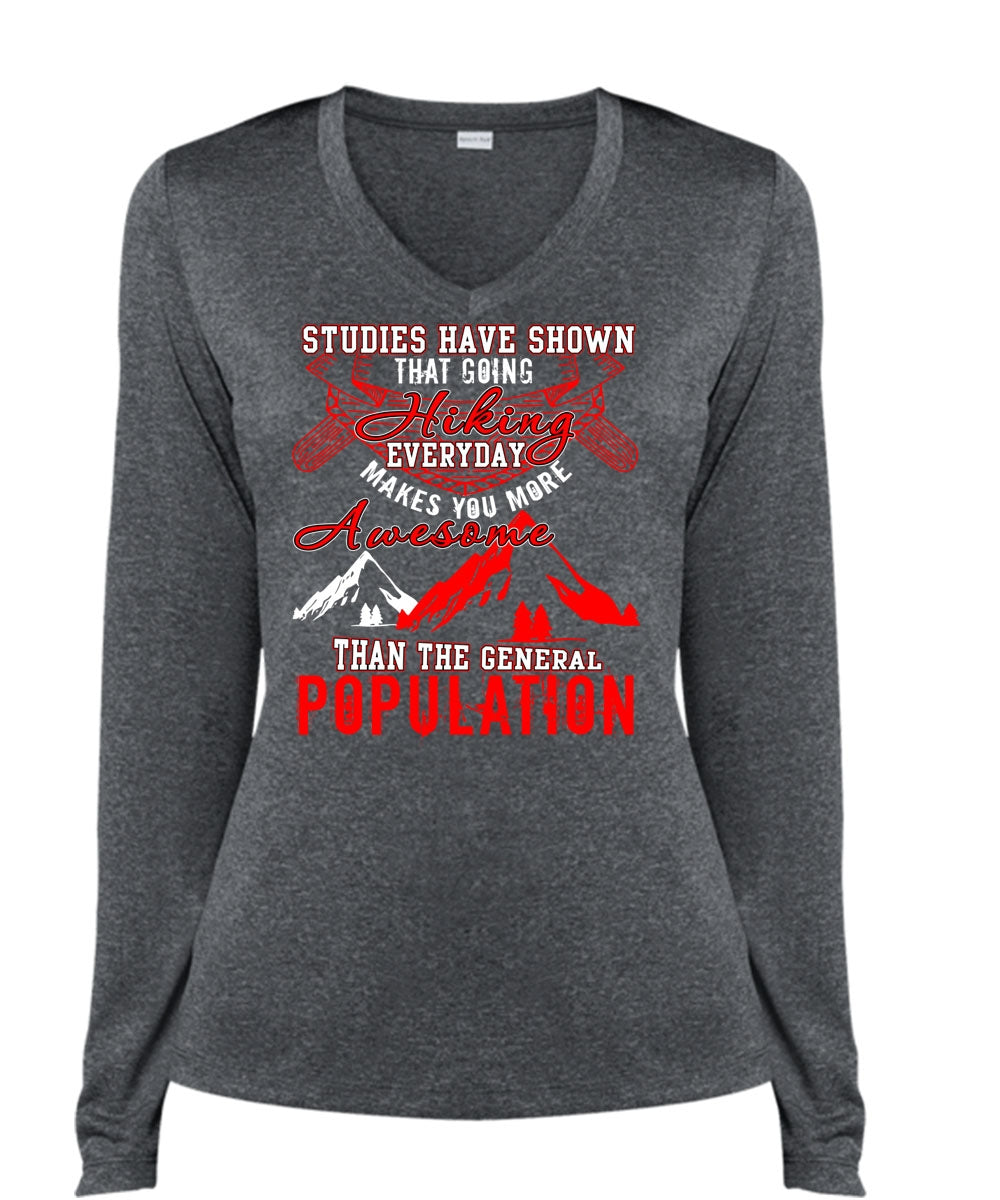 Going Hiking T Shirt, I Love Hiking T Shirt, Cool Shirt (Ladies LS Heather V-Neck)
