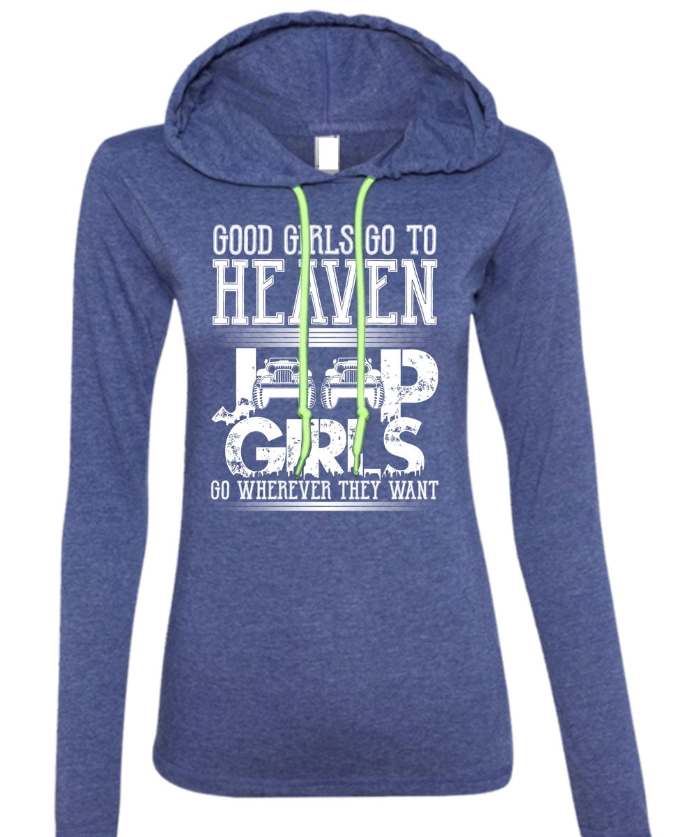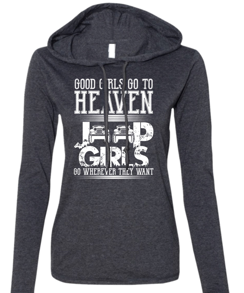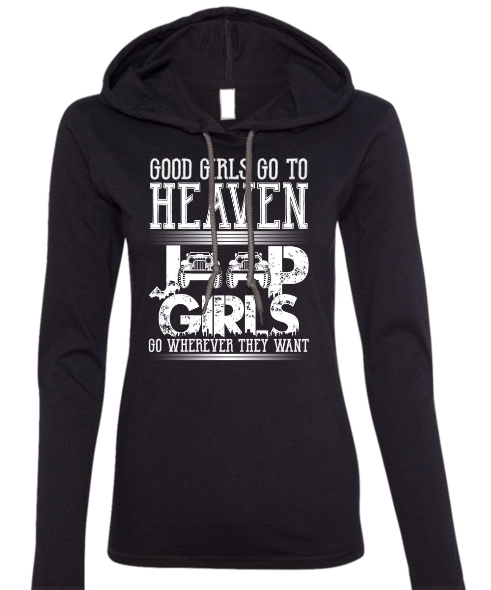 Good Girls Go To Heaven Jeep Girls T Shirt, Being A Driver T Shirt (Anvil Ladies Ringspun Hooded)