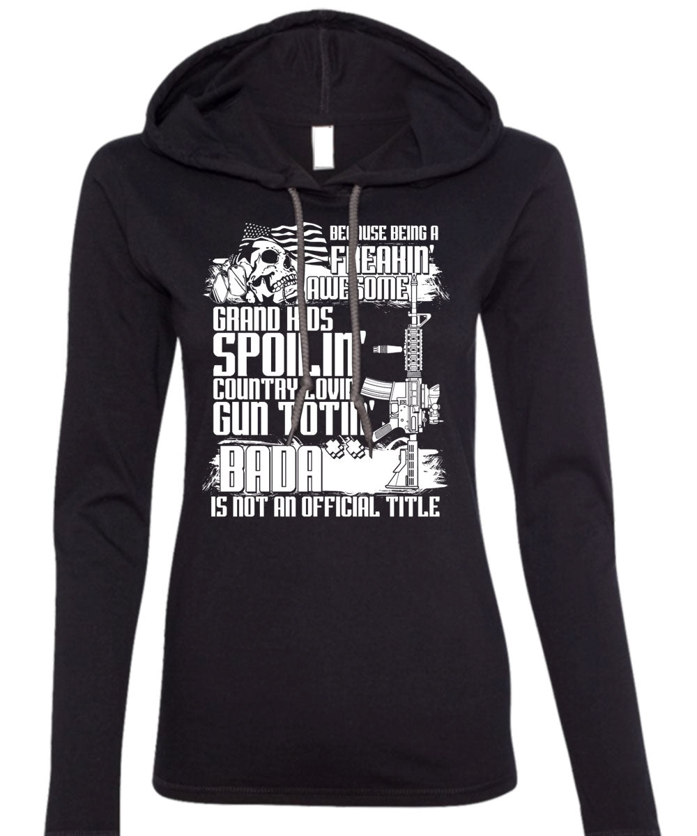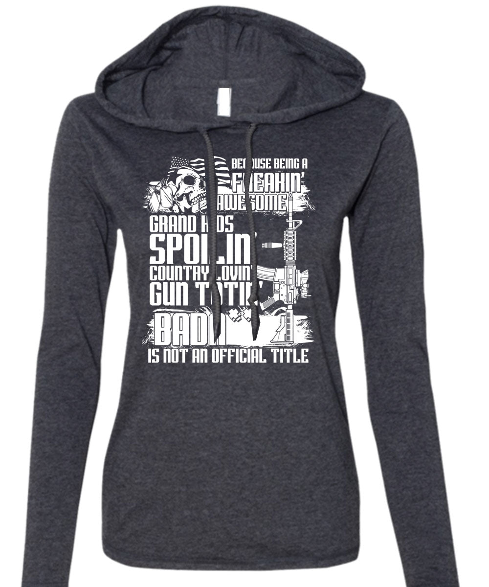 Grandkids Spoiling Country Loving Gun T Shirt, I Love Veteran T Shirt (Anvil Ladies Ringspun Hooded)