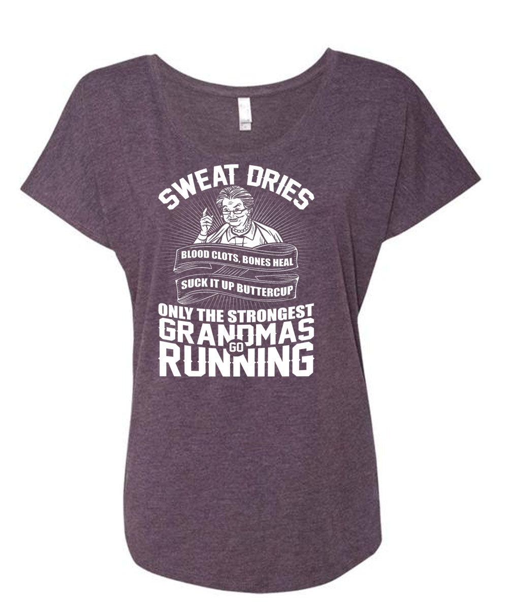 Grandmas Go Running T Shirt, Sweat Dries T Shirt, Cool Shirt (Ladies' Triblend Dolman Sleeve)