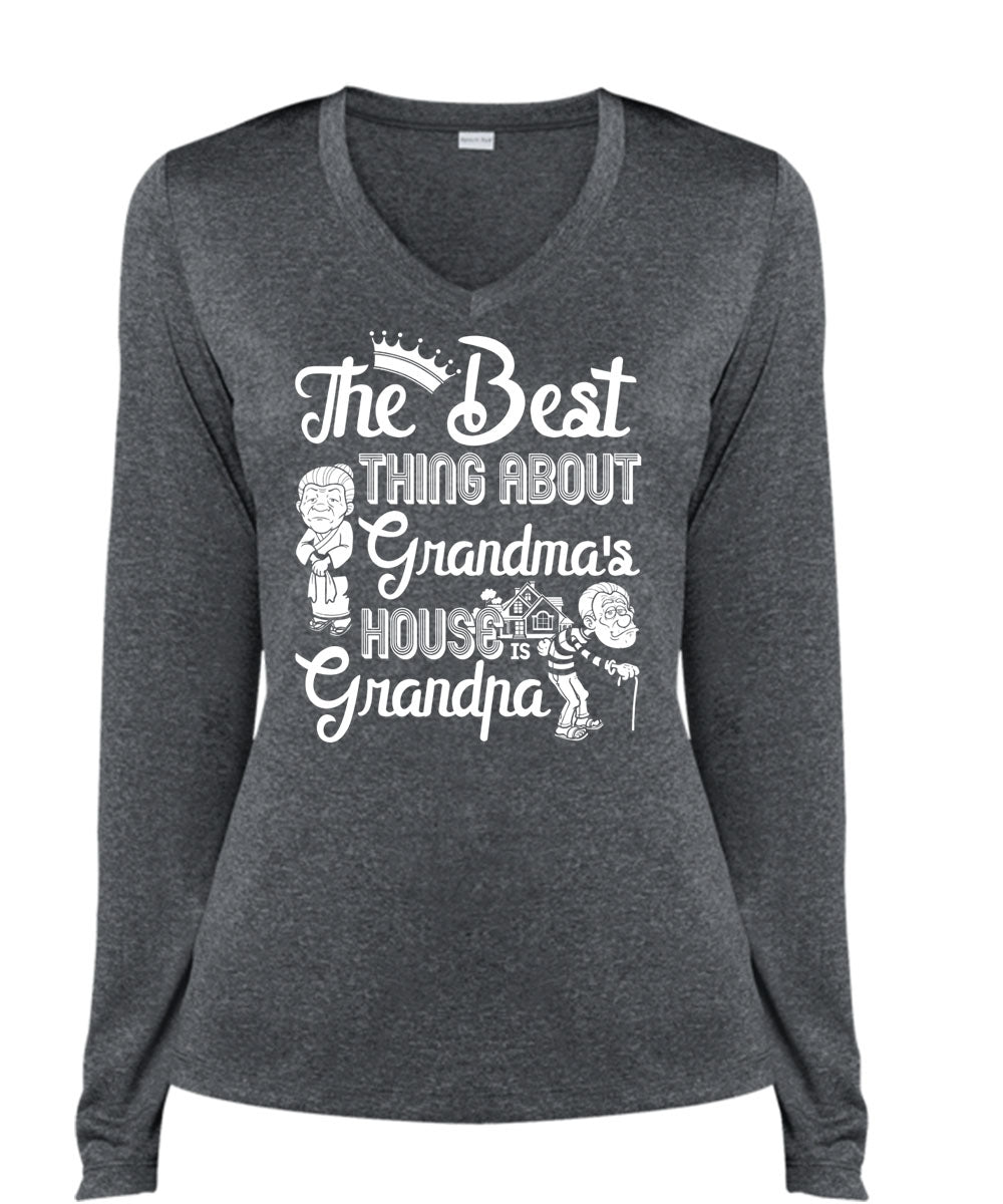 Grandma's House Grandpa T Shirt, Being A Nana T Shirt, Cool Shirt (Ladies LS Heather V-Neck)