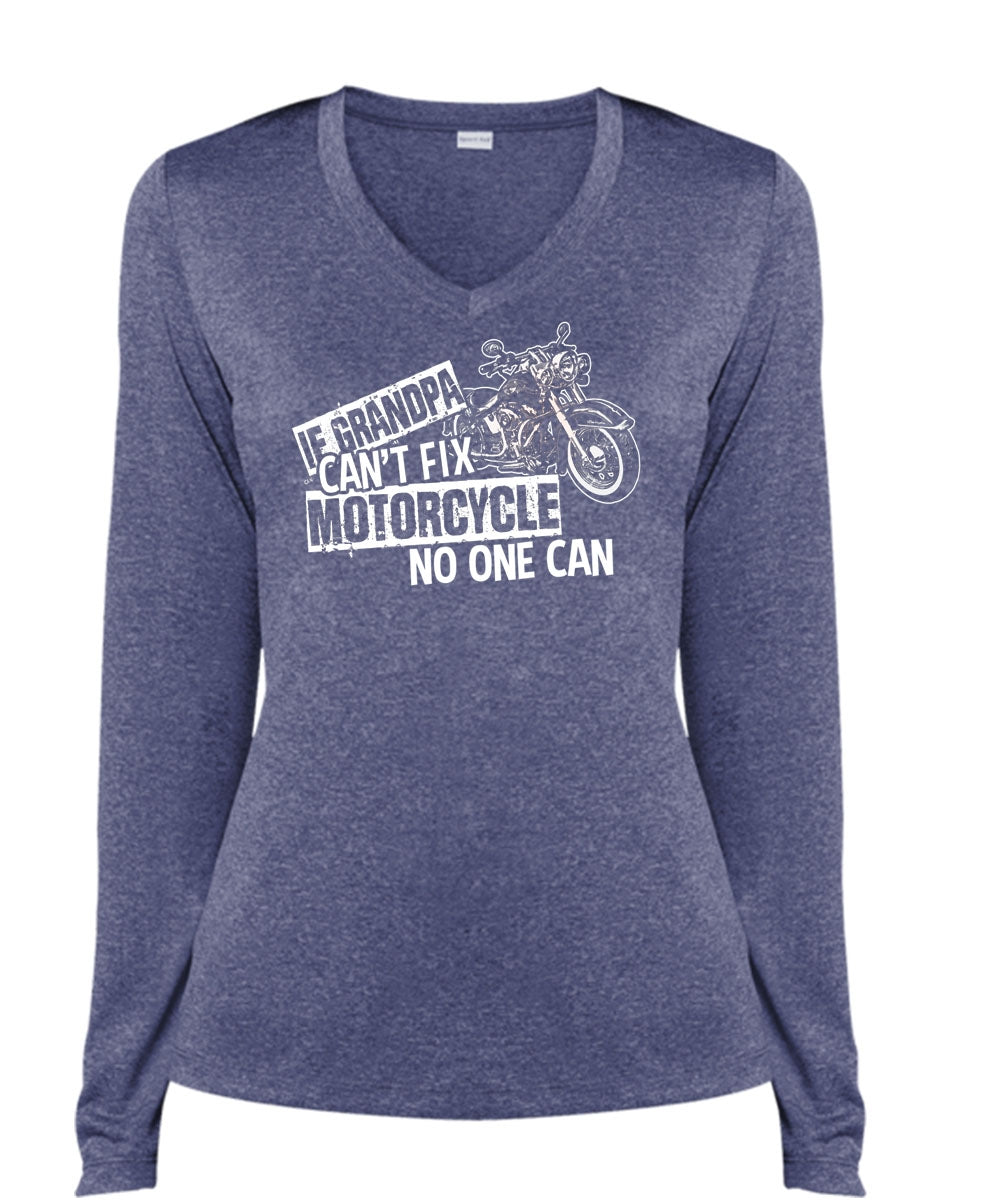 Grandpa Can't Fix Motorcycle T Shirt, Being A Bike T Shirt, Cool Shirt (Ladies LS Heather V-Neck)