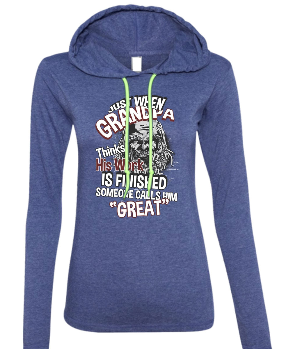 Grandpa Thinks His Work Is Finished T Shirt, Someone Calls Him Great T Shirt (Anvil Ladies Ringspun Hooded)