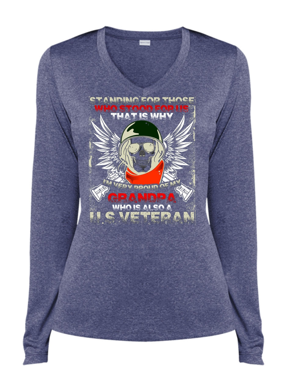 Grandpa Who Is Also US Veteran T Shirt, Being A Veteran T Shirt, Cool Shirt (Ladies LS Heather V-Neck)