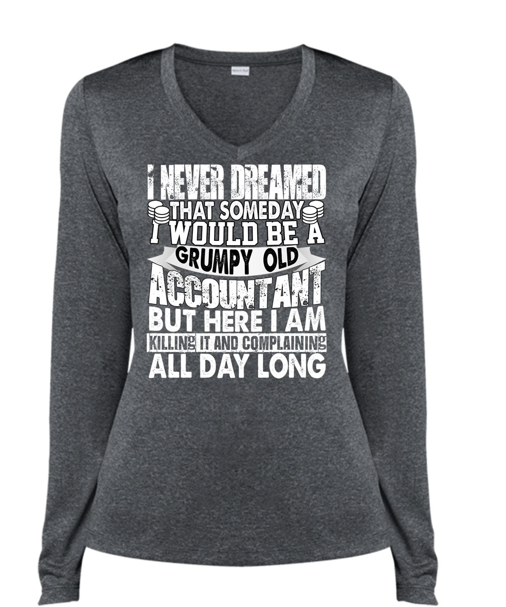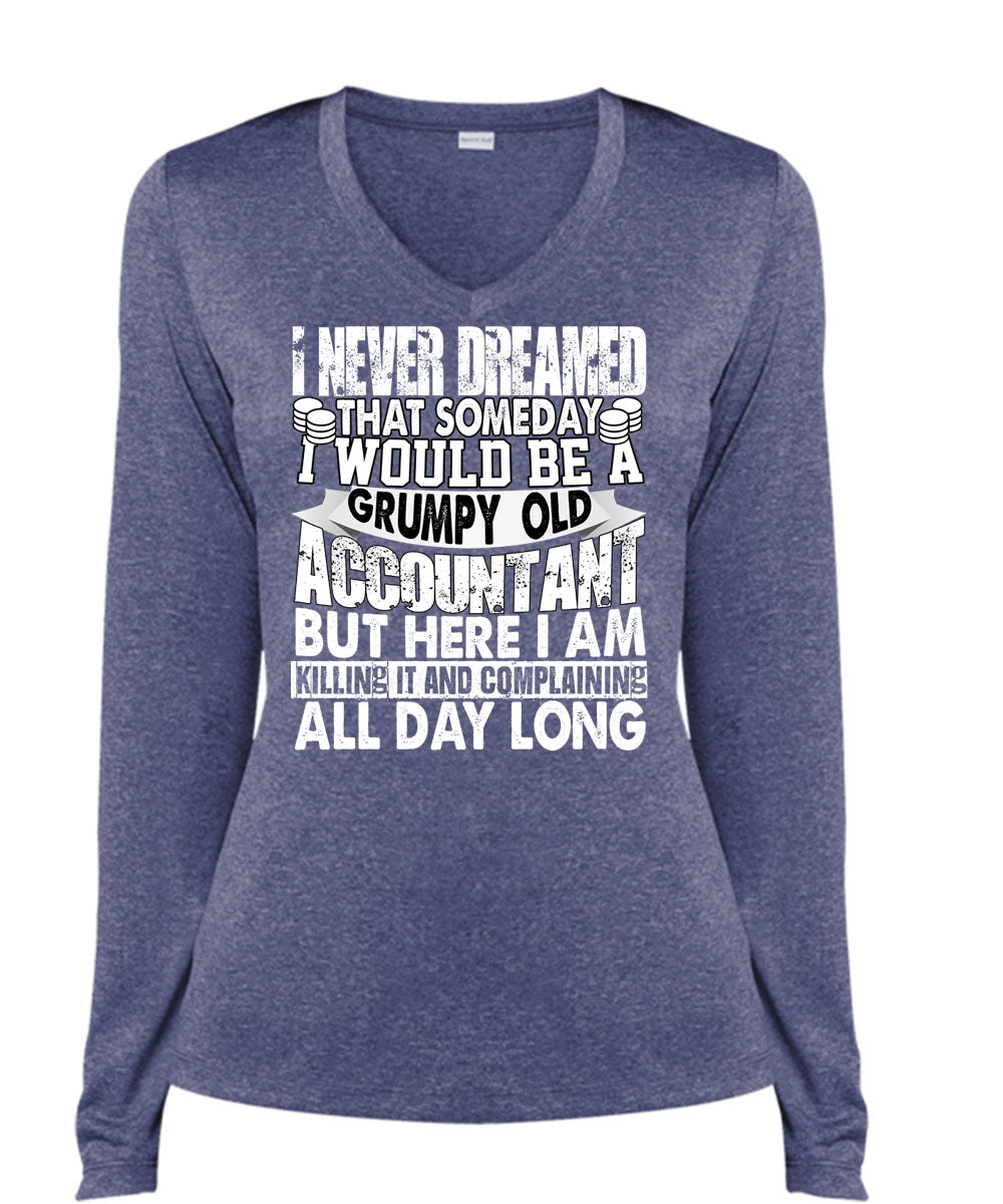 Grumpy Old Accountant T Shirt, I Never Dreamed T Shirt, Cool Shirt (Ladies LS Heather V-Neck)